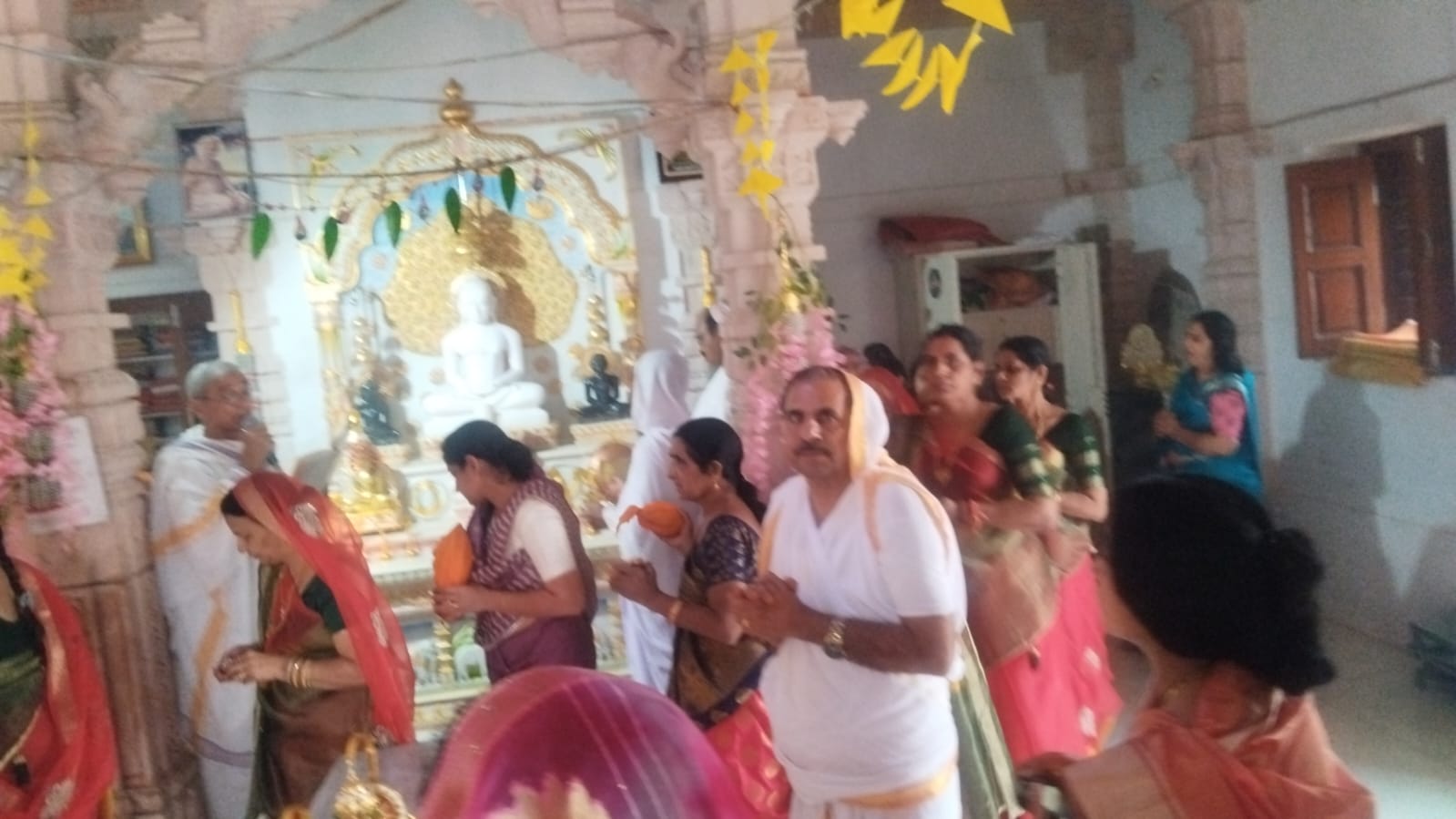 *बड़े धूमधाम से श्री जी का मंगल विहार कर बॉडीगम जैन मंदिर के पहुंची शोभा यात्रा 👏 सुरेश चंद्र गांधी जैन समाज प्रवक्ता नौगामा जिला बांसवाड़ा राजस्थान की रिपोर्ट 🙏 आज बॉडीगमा नगर मैं कुछ आठ माह पूर्व चोरी गई प्रतिमाएं पुनः प्राप्त होने पर परम पूज्य मुनी श्री सुधा सागर जी के मंगल आशीर्वाद सुयश प्रदीप भैया प्रतिष्टाचार्य सानिध्य से गला कोटा मध्य प्रदेश मैं पंच कल्याण प्रतिष्ठा मैं प्रतिष्ठित कर नोगामा नगर के आदिनाथ मंदिर में विराजमान थी, आज बड़े भक्ति भाव से बैंड बाजो के साथ विशाल जैन समूह महिलाएं केसरिया वस्त्रमें पुरुष सफेद वस्त्रमें नाचते गाते हुए गरबा नृत्य करते हुए तीनों प्रतिमाएं आदिनाथ मंदिर से विहार कराते हुए बोडीगामा नगर पहुंचे, जहां पर सभी धर्म प्रेमी बंधुओ ने श्रीजी की अगवानी की एवं अपने घरों के बाद रंगोली सजाकर बड़े भक्ति भाव से गरबा नृत्य करते हुए भगवान की स्तुति की बॉडीगमा मंदिर पहुंचने पर विशाल जैन समूह के सानिध्य में अभिषेक शांति धारा की गई अभिषेक शांति धारा करने का प्रथम सौभाग्य नानावटी रामनलालजी, लक्ष्मीलाल नानावटी एवं नानावटी सुभाष चंद्रजी को प्राप्त हुआ इस अवसर पर नौगामा बागीदौरा जोलना बांसवाड़ा कलिजरा, परतापुर घाटोल आनंदपुरी जोलना आदि की भक्तगण उपस्थित थे विधानाचार्य रमेश चंद्र गांधी, वीना दीदी के सानिध्य में शांति विधान के अर्घ्य चढ़ाए गए, उपस्थित सभी धर्म प्रेमी बंधुओ को वात्सल्य भोज कराया गया इस अवसर पर जैन समाज अध्यक्ष लक्ष्मी लाल जैन रमलाल नानावटी सुभाष नानावटी पंकज नानावटी राजेश दोसी, दिलीप दोसी दिगंबर जैन समाज नौगामा अध्यक्ष विपुल पंचोली में आभार प्रकट किया इस अवसर पर रमनलाल नानावटी द्वारा पुलिस प्रशासन का भी आभार माना उक्त जानकारी जैन समाज प्रवक्ता सुरेश चंद्र गांधी द्वारा दी गई