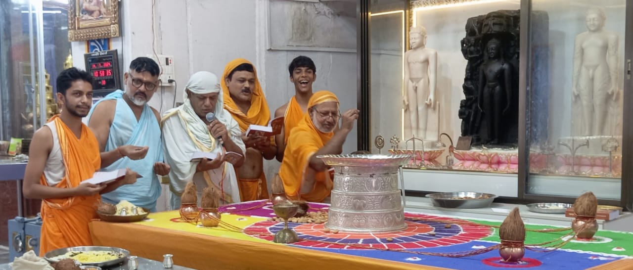 विधान विधान में समाज के हर वर्ग के लोग पहुंचकर धर्म लाभ ले रहे हैं शाम को 48 दीपक द्वारा बड़े बाबा की आरती एवं भक्तांबर पाठ का आयोजन किया जाता है