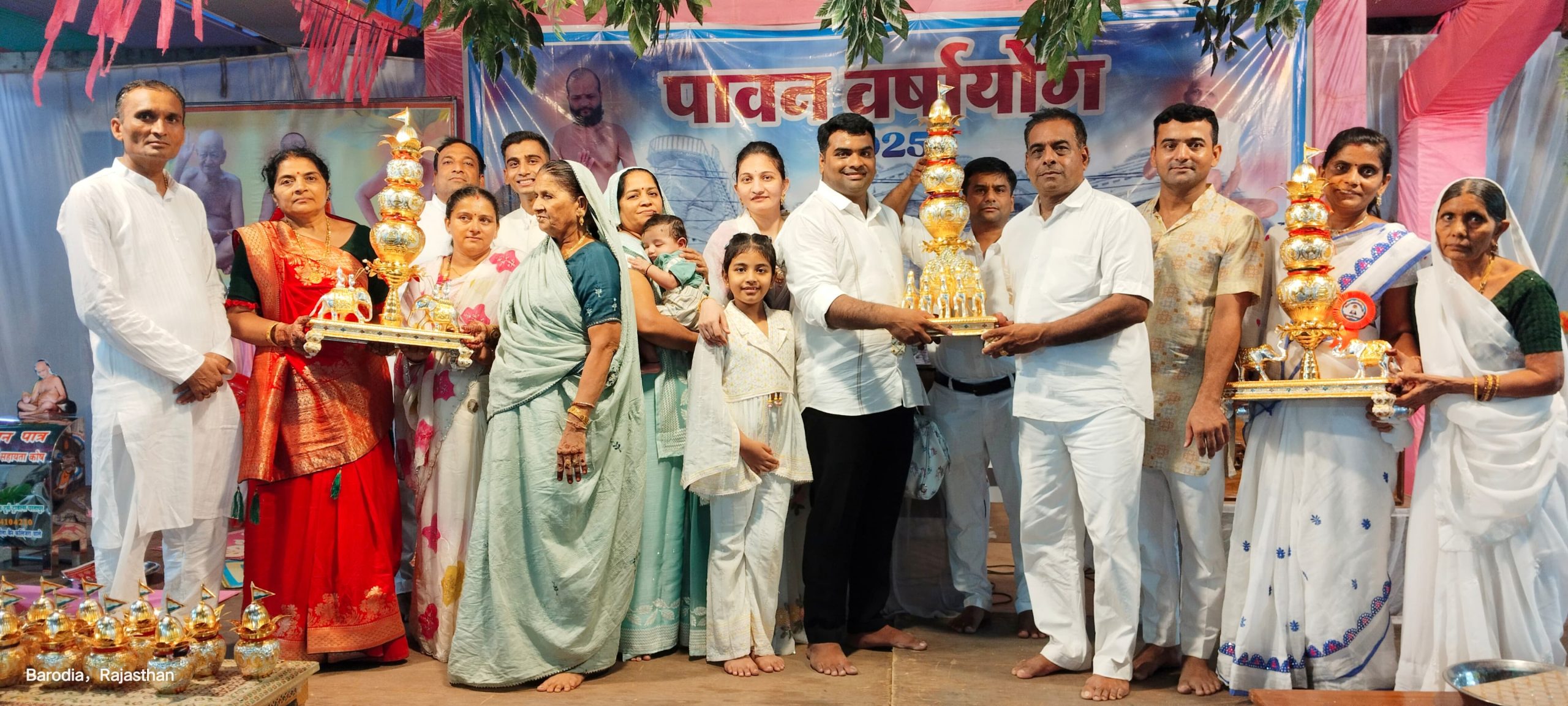 2025 बड़ोदिया चातुर्मास के लिए मुनि श्री शुद्ध सागरजी महाराज के चातुर्मास का मूल प्रथम कलश रोनक जैन पुत्र सतीश चंद्र जैन, संगीता जैन, निक्की जैन, निर्धा जैन परिवार ने स्थापित किया। द्वितीय कलश आचार्य श्री विद्यासागरजी महाराज के पूण्यार्जक बबली देवी दोसी, महेश दोसी, कमलेश दोसी, साधना दोसी, शीतल दोसी,विराग,दृष्टा,पुजा, प्राची परिवार ने स्थापित किया। तीसरा कलश जितेंद्र जैन पुत्र पोपटलाल जैन, सोनल जैन, विस्मय जैन, माही परिवार ने स्थापित किया। इन तीनों परिवारों ने बोली लेकर मुख्य कलश जिन मंदिर में स्थापित किए।
