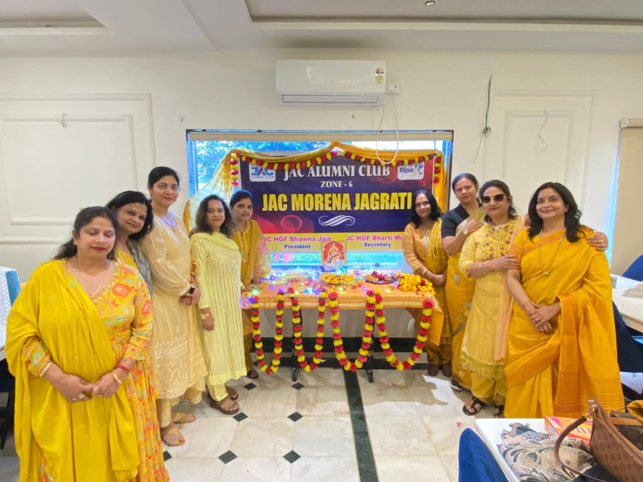 जेएसी मुरैना जागृति द्वारा आयोजित कार्यक्रम में संगठन की सभी मेम्बर्स बसंती परिधान पहनकर पहुंचीं थीं। सबसे पहले उन्होंने मां वीणापाणि की आराधना की और एक-दूसरे को बसंत पंचमी पर शुभकामनाएं दीं। इसके बाद संगठन की अध्यक्ष भावना जैन ने कहा कि बसंती रंग सात्विक प्रवृत्ति का प्रतीक माना जाता है साथ ही सादगी और निर्मलता को भी दर्शाता है। इस रंग का संबंध आध्यात्मिकता से भी है। सचिव भारती मोदी और कोषाध्यक्ष नीता बांदिल ने भी बंसत पंचमी के बारे में खास जानकारियां जेएसी मेम्बर्स को दीं। इसके बाद कार्यक्रम की संयोजक ललिता गोयल और अनुराधा गर्ग ने खुल जा सिम-सिम और तंबोला आदि गेम्स कराए। खास बात यह कि इन गेम्स में जो प्रश्न पूछे गए, वे बसन्त पंचमी पर ही आधारित थे। गेम्स में जिन मेम्बर्स ने बेहतर प्रदर्शन किया, उन्हें पुरस्कार दिए गए। गेम्स के अलावा संगठन की सदस्यों ने बसंत पंचमी के गीत गाये और पारंपरिक नृत्य भी किया। अन्त में सभी ने भोजन किया। मेन्यू में अधिकांश चीजें पीले रंग की रखी गई थीं। जेएसी मुरैना जागृति के इस पहले सामूहिक कार्यक्रम में कार्यकारिणी का गठन भी किया गया।