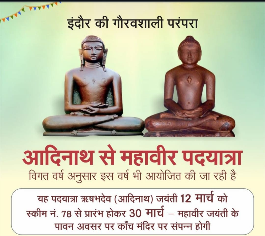 धर्म समाज प्रचारक राजेश जैन दद्दू ने बताया कि यह पदयात्रा भगवान ऋषभदेव (आदिनाथ) जन्म कल्याणक 12 मार्च गुरुवार को स्कीम नं.78 स्थित जिनालय से प्रारंभ होकर