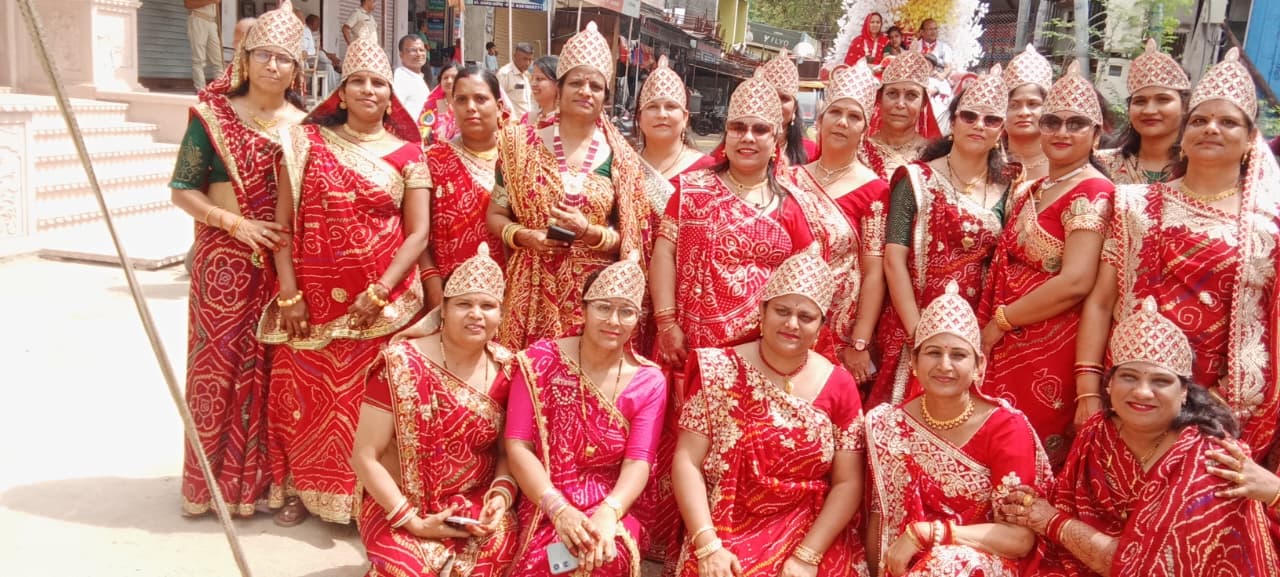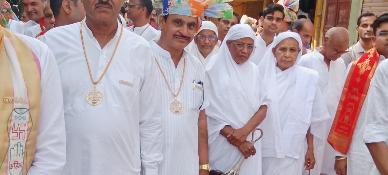 भगवान महावीर स्वामी के 2625 व जन्म जयंती महोत्सव पर आर्यिका 105 संगममती माताजी 105 आर्यिका विशेष मति माताजी का परम सानिध्य होने से संपूर्ण जैन समाज जय जयकारों के साथ शोभा यात्रा निकाली
