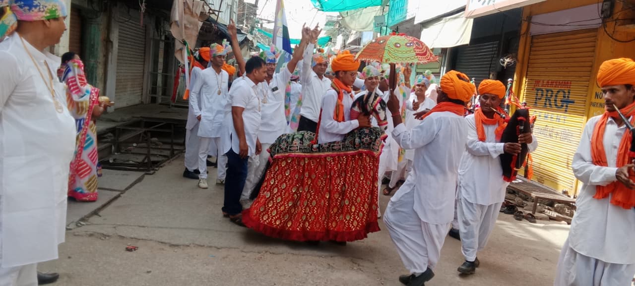 शोभा यात्रा में अपार बैंड बाजे जय घोष हाथी घोड़े बगिया के साथ भगवान की शोभायात्रा निकाली गई