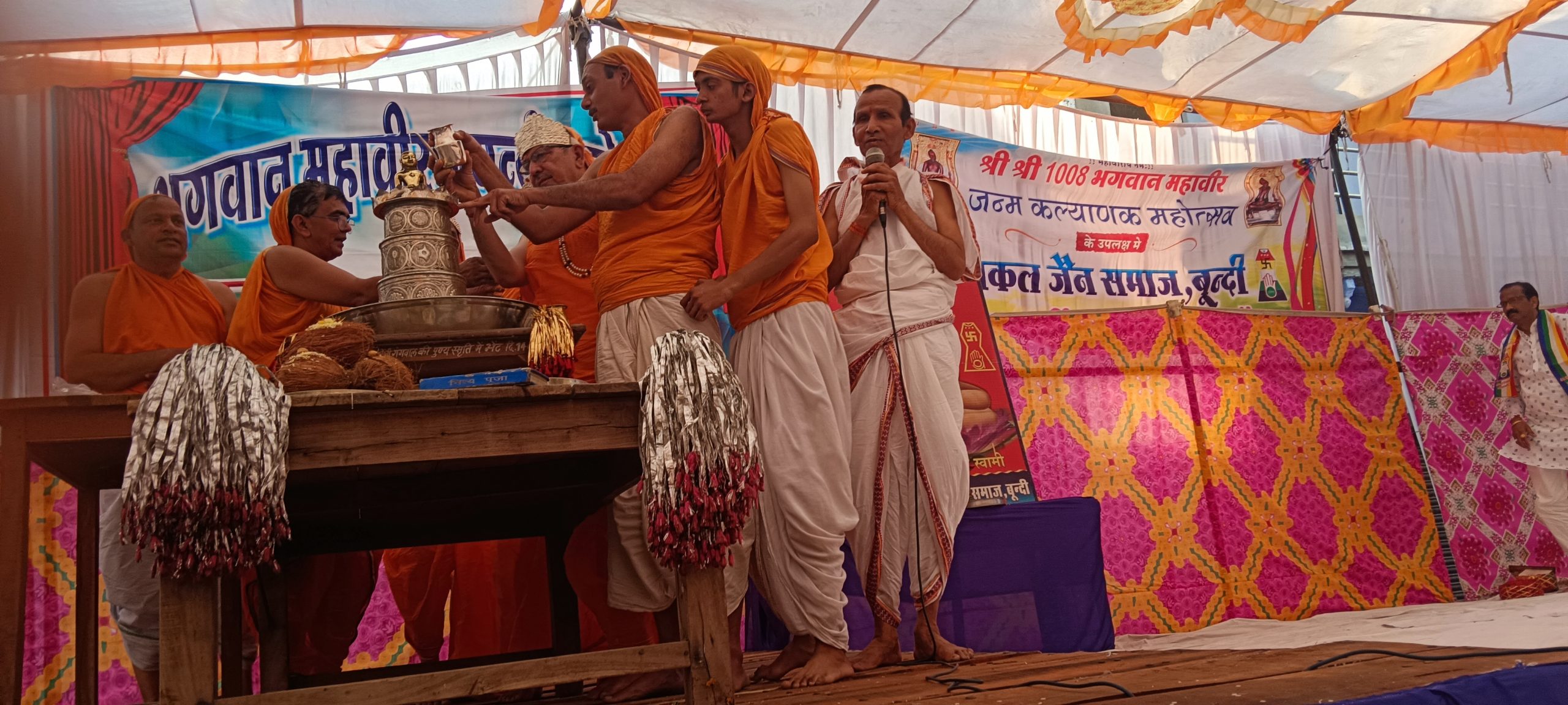 बूंदी, 11 अपै्रल। पूरी दुनिया को जीओ और जीने दो तथा पांच महाव्रतों का पालन करने का संदेश देने वाले विश्व वंदनीय भगवान महावीर स्वामी का 2624वां जन्म कल्याणक महोत्सव (जन्म जयंती समारोह) छोटी काशी बून्दी मंे आर्यिका 105 सत्यमति माताजी एवं आर्यिका 105 हेमश्री माताजी के सानिध्य में धूमधाम से मनाया गया।