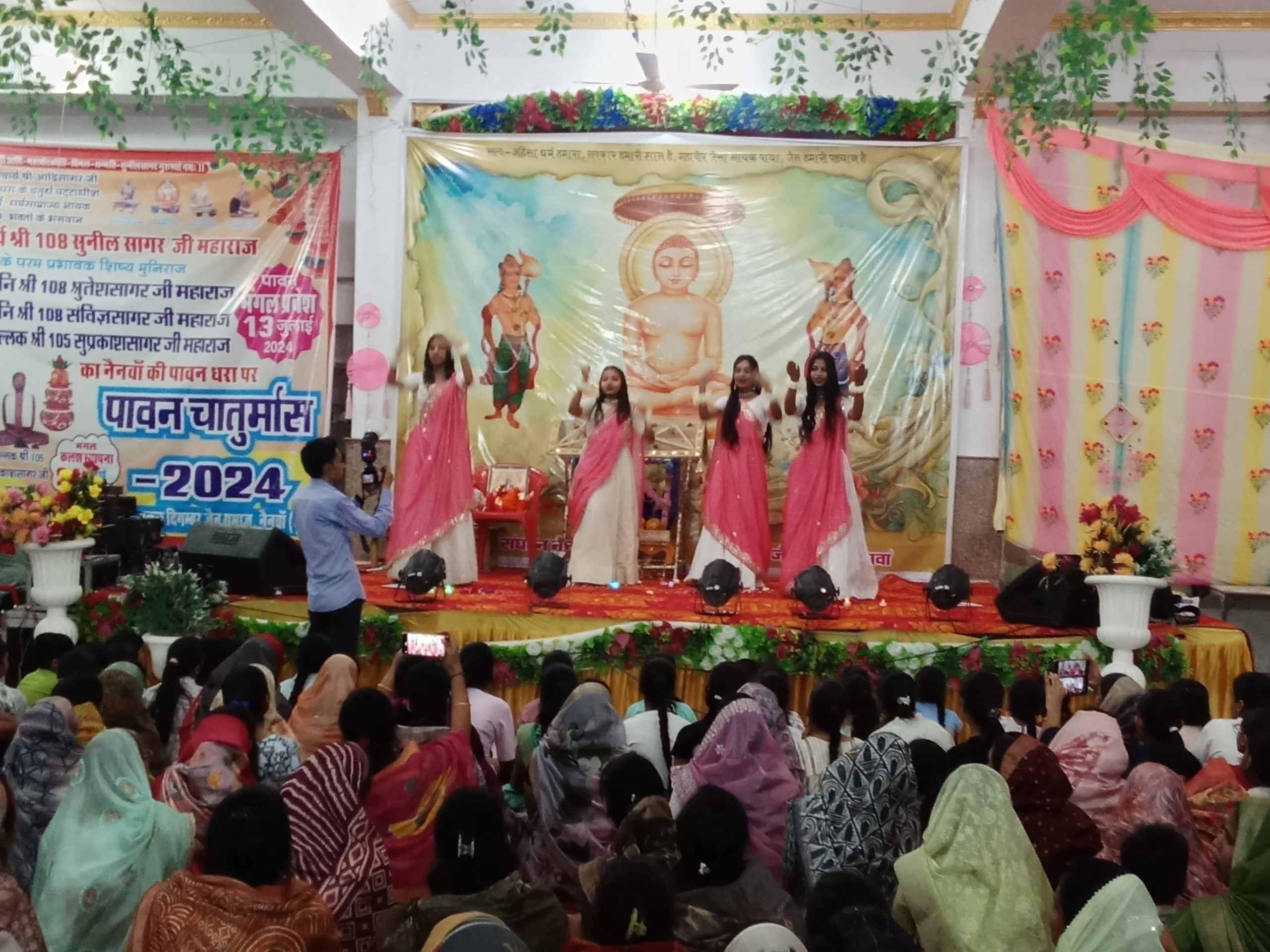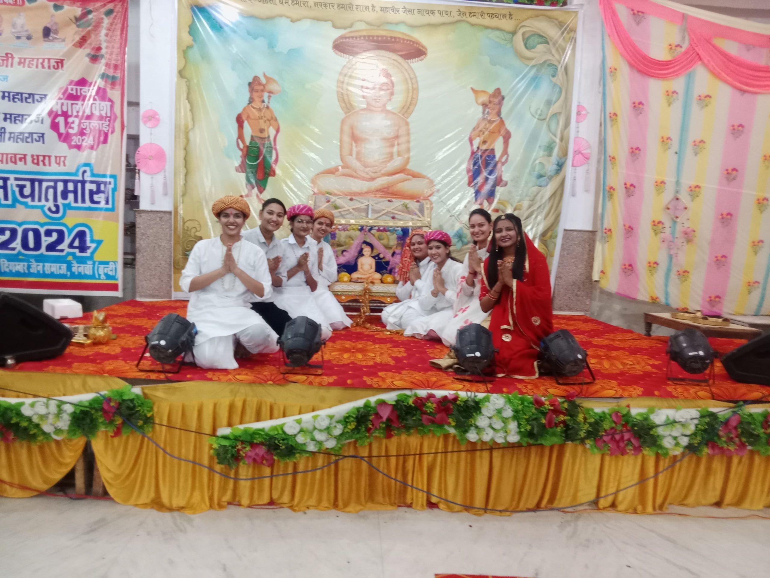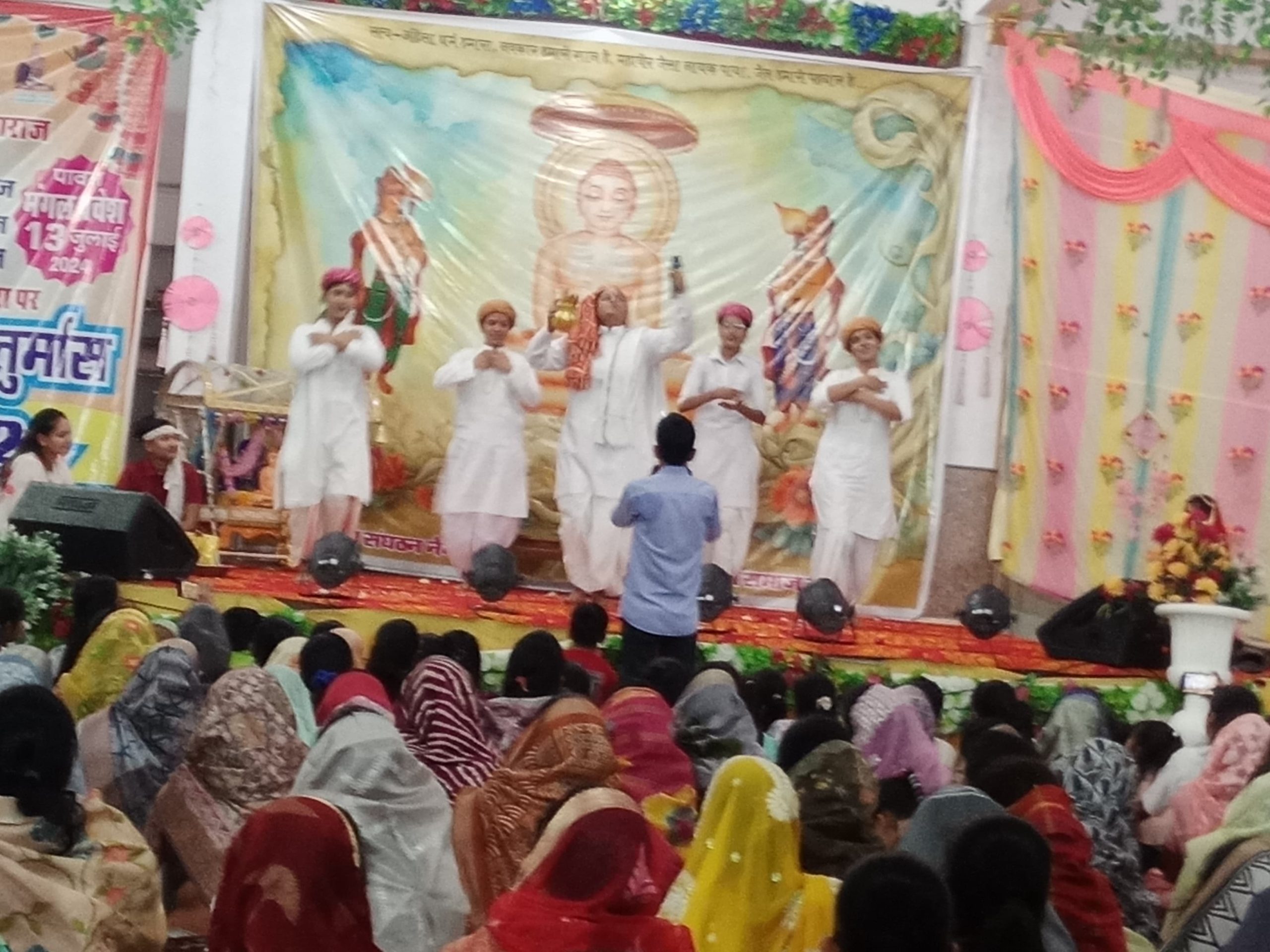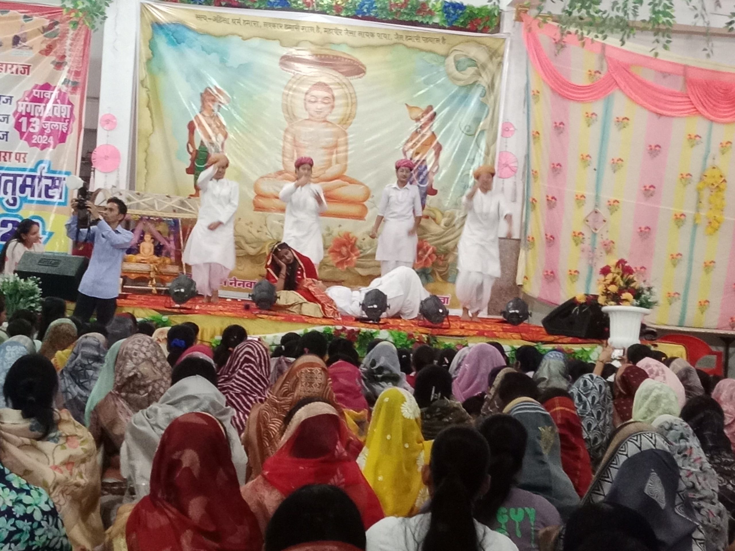 अग्रवाल दिगंबर जैन बड़े मंदिर में 8:30 पर धर्म प्रभावना बालिका मंडल द्वारा मंगलाचरण की प्रस्तुति के बाद भव्य नाटिका की प्रस्तुति कलाकारों द्वारा दी गई