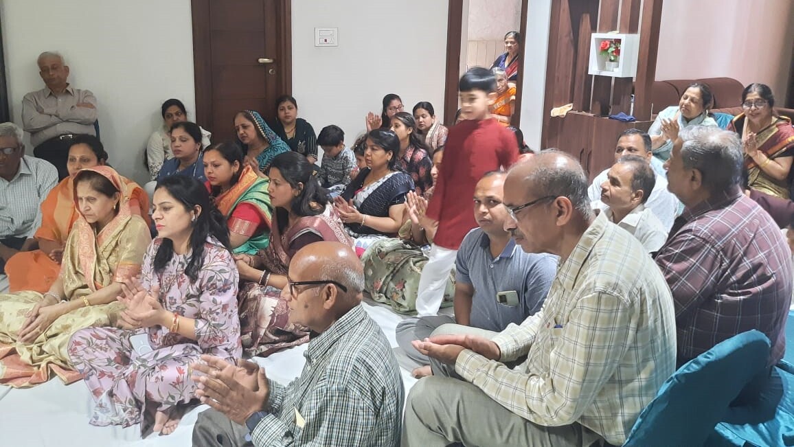 पाठ में भाग लेते सदस्य व आयोजकों को सम्मानित करते पदाधिकारी………….(डा. आर. के. जैन)