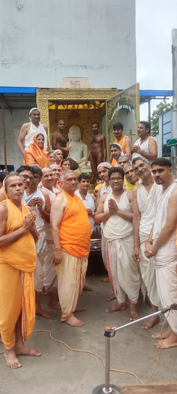 शांति वीर धर्म स्थल स्थल भगवान महावीर का अहिंसा रथ 2550 महोत्सव आचार्य चतुर्थ पत्ता दी सुनील सागर महाराज की प्रेरणा से पूरे भारत में भिन्न-भिन्न प्रांत में भ्रमण करता हुआ जिन-जिन को भगवान