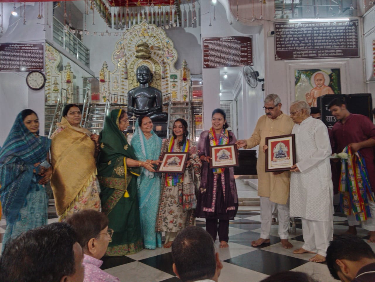 कोटा आर के पुरम स्थित परम पूज्य जंगल वाले बाबा मुनि श्री चिन्मय सागर जी महाराज की मंगल प्रेरणा से निर्मित शनि अरिष्ट निवारक मुनिसुव्रतनाथ दिंगबर जैन त्रिकाल चौबीसी जैन मंदिर में हर्षौल्लास के वातावरण में विगत दस दिनों तक दस लक्षण पर्व के पावन सुअवसर पर विभिन्न धार्मिक आयोजनों के साथ मनाया गया।जैन धर्म दर्शन के विद्वान पंडित अभिषेक शास्त्री दमोह ने दस लक्षण विधान में अपनी अनोखी परिचित शैली में संगीत की सुमधुर धुनों के साथ चार चांद लगा दिए। श्रद्धालुओं खूब भक्ति भाव ओर श्रद्धा के साथ नृत्य किया। मंदिर समिति के अध्यक्ष अंकित जैन बताया कि दिनांक 8 सितंबर को प्रातः नित्य अभिषेक शांति धारा पूजन के बाद दस लक्षण पर्व समापन पर एक अभिनंदन समारोह आयोजित किया गया।इसमें सबसे अच्छी बात यह रही कि जो मंदिर के माली ओर पुजारी है उनका सबसे पहले अभिनंदन किया गया। ये लोग सुबह 4 बजे से ही मंदिर की व्यवस्थाओ में लग जाते थे। उसके बाद सबसे बड़ी यह रही कि जो मंदिर की नींव से जुड़े थे उन श्रद्धालुओं बुलाकर उनकी सेवाओं को देखते हुवे उनका भाव भीना अभिनंदन किया गया। मंदिर समिति के महामंत्री अनुज गोधा ओर कार्याध्यक्ष प्रकाश जैन ने बताया कि इस अवसर पर जैन समाज आर के पुरम की युवा प्रतिभाओं है उनका भी सम्मान किया गया। मंदिर समिति के प्रचार प्रसार मंत्री पारस जैन “पार्श्वमणि” और उपाध्यक्ष लोकेश जैन बरामुंडा ने बताया कि दस लक्षण के 10 उपवास 5 उपवास 3 उपवास की साधना करने वाले श्रद्धालुओं का भी भावभरा अभिनंदन किया गया। मंदिर समिति के कोषाध्यक्ष ज्ञानचंद जैन एवं संयोजक पंकज जैन ने बताया कि इस अवसर पर अमोलक चन्द जैन रूप चंद जैन विनोद जैन टोरडी जय कुमार जैन डॉक्टर निलेश जैन पदम जैन पवन जैन संजय जैन राजेश जैन भागचंद मित्तल मुकेश पपड़ीवाल पी सी जैन सुनील ठोरा महावीर जैन चंदेश जैन इत्यादि श्रेष्ठिजन उपस्थित थे।
