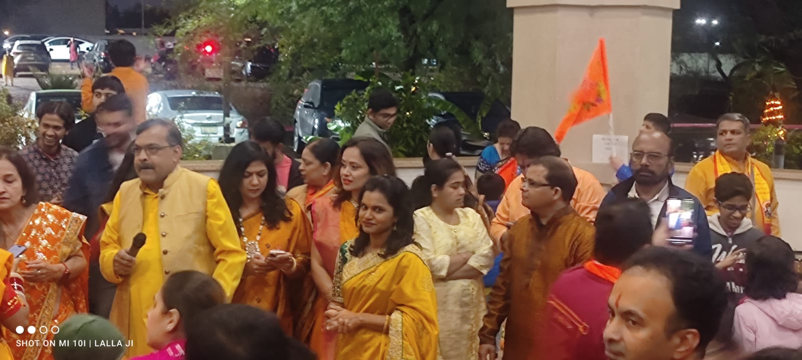 भगवान श्री राम की प्राण प्रतिष्ठा अयोध्या में भारत के प्रधानमंत्री श्री नरेंद्र कुमार मोदी, राष्ट्रीय स्वयंसेवक संघ चालक डॉ मोहन जी भागवत एवं उत्तर प्रदेश मुख्यमंत्री श्री योगी नाथ जी के कर कमलों द्वारा हुई। इस अवसर पर हिंदू एकता मंदिर फीनिक्स एरिज़ोना अमेरिका में श्री हनुमान चालीसा तथा महा आरती पूजन हवन द्वारा की गई। पूजा के उपरांत महाप्रसाद तथा आतिशबाजी आदि द्वारा बड़े धूमधाम से मनाया गया। यह अवसर पर जैन राजनीति चेतना मंच महाराष्ट्र के अध्यक्ष श्री सुमित लल्ला जैन नागपुर अपने परिवार के साथ उपस्थित थे। और कार्यक्रम आयोजन कर्ताओं का लल्ला जी ने दिल से आभार माना कहा इसी प्रकार रामलला प्राण प्रतिष्ठा दिवस हर साल दीपावली जैसा मनाते रहें, यही शुभकामनाएं!