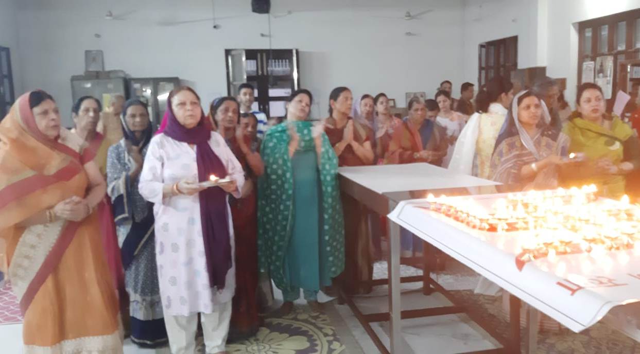 पाठ करते व आरती करते श्रद्धालु……………(डा. आर. के. जैन)