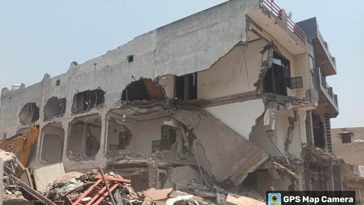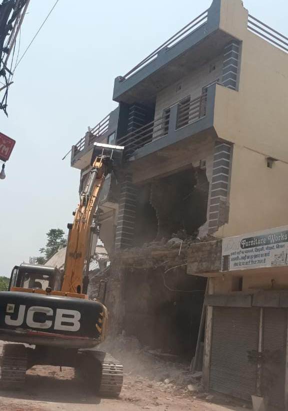 काला कबाड़ी की संपत्ति को ढहाती निगम की जे. सी. बी. व निगम की टीम द्वारा ध्वस्त की गई काला कबाड़ी की अवैध संपत्ति…………..(डा. आर. के. जैन)