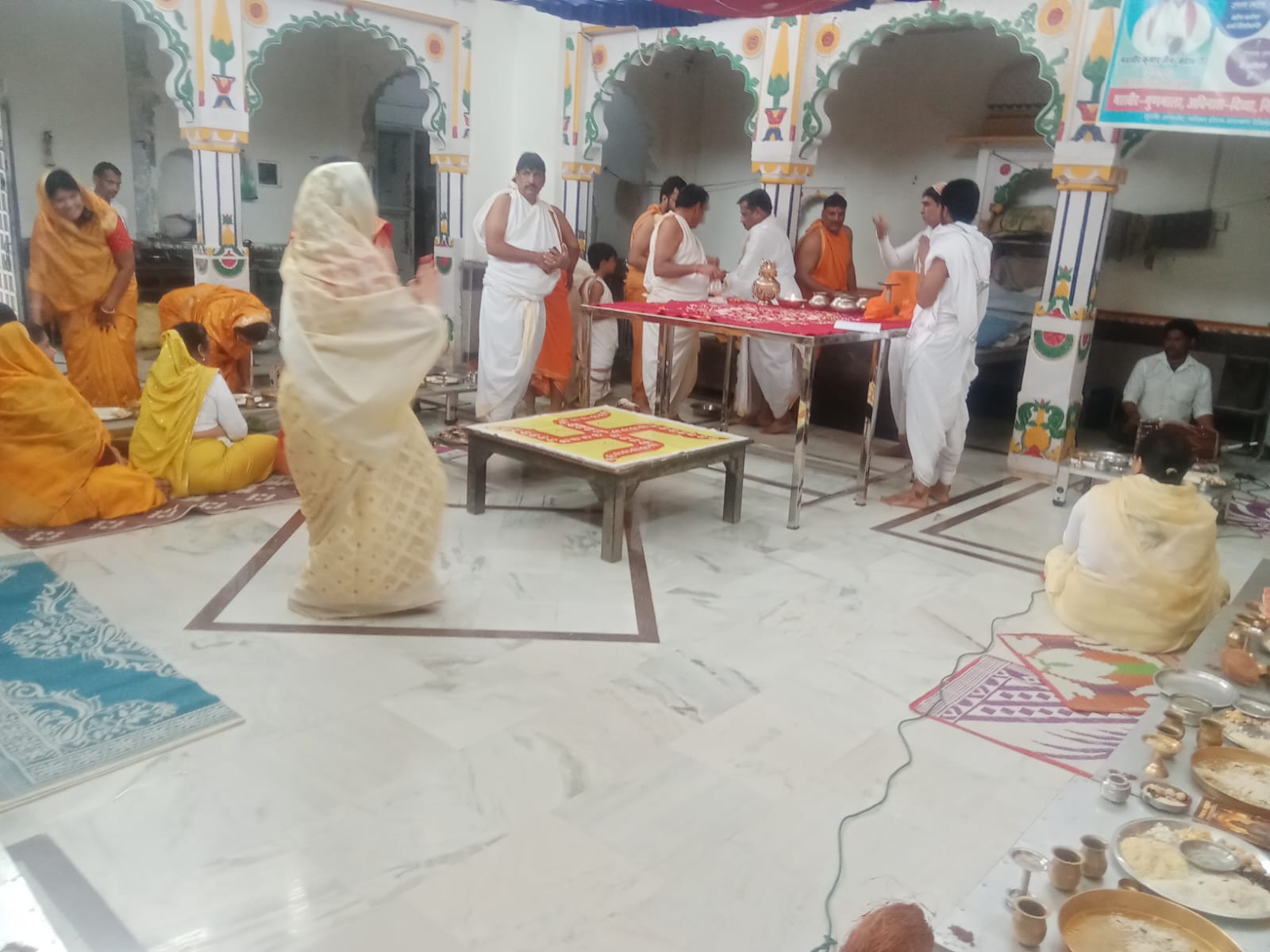 चार हाटडिया के तेरापंथ जैन मंदिर में 1008 पारसनाथ भगवान की शांति धारा नित्य नियम पूजन के पश्चात 8:00 बजे भक्तामरस्तोत्र के 48 दिवसीय पाठ संपन्न होने पर मंडल विधान मारवाड़ा परिवार द्वारा सम्पन कराया गया