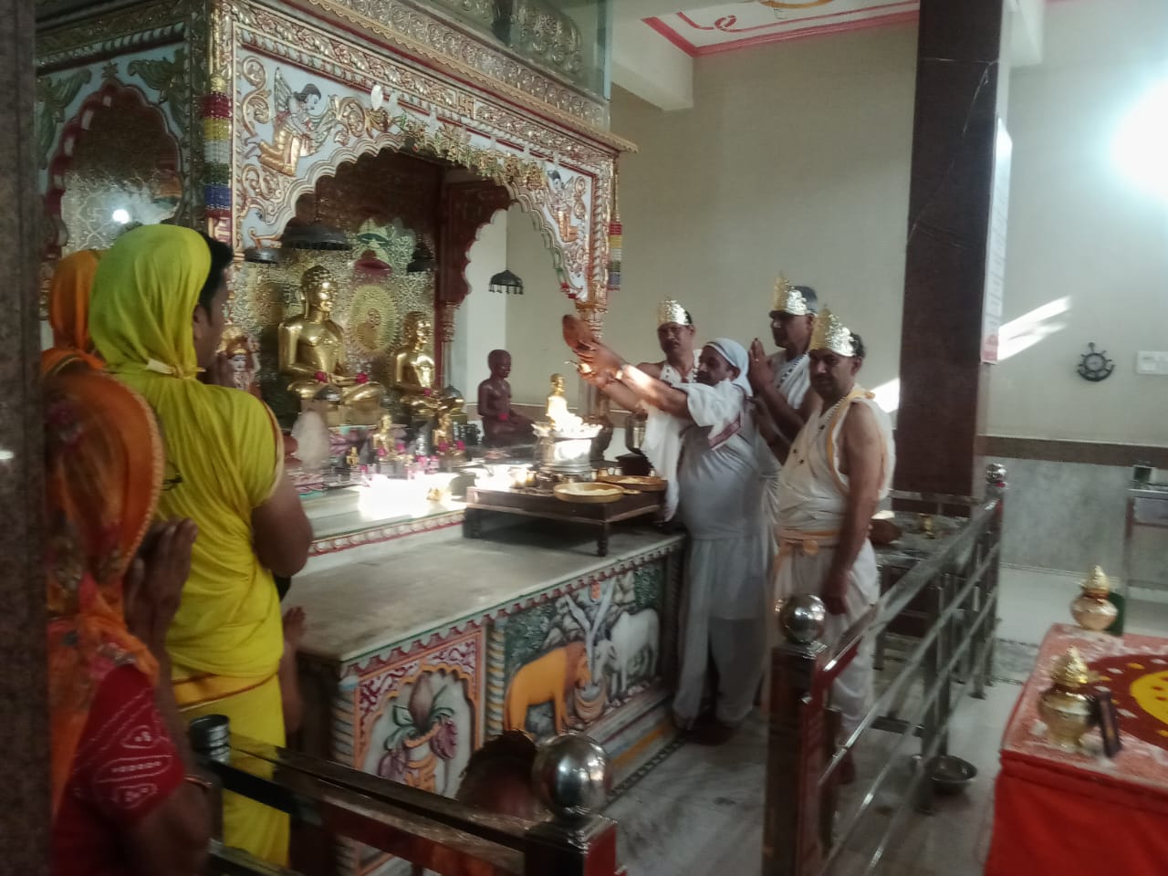 भगवान महावीर जिनालय पर प्रातः 8:00 बजे भगवान का अभिषेक शांति धारा पूजन एवं भक्तामरस्तोत्र मंडल विधान संपन्न हुआ