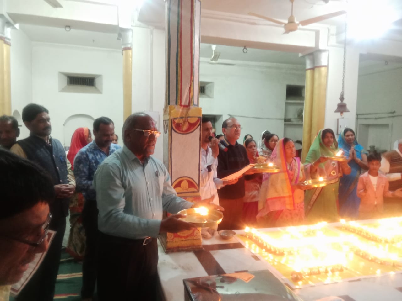 रविवार 10 मार्च 2023 कस्बे के बीचो,, बीच दिगंबर जैन खंडेलवाल सरावगी तेरा पंथ जैन मंदिर में 288 दिनों से शाय काल 48 दीपकों को जलाकर बारी-बारी से क्या भक्तामर स्तोत्र का उच्चारण कर भक्तों द्वारा दीपक चढ़ाए गए