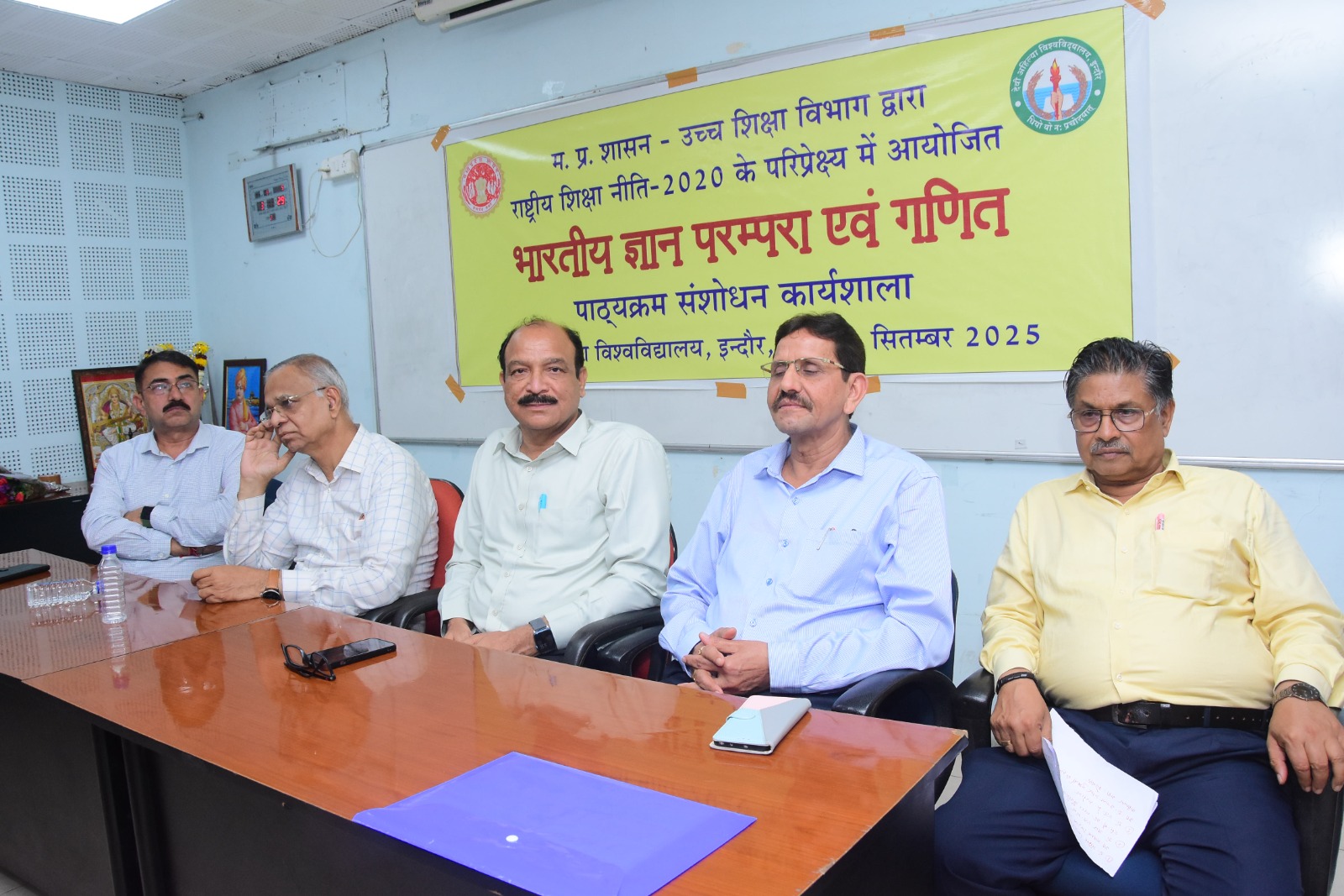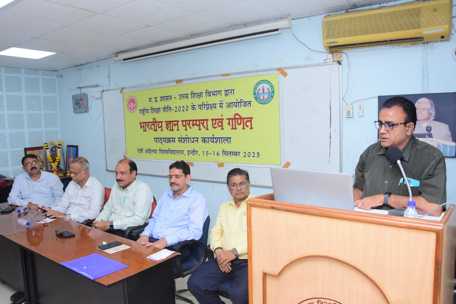 इंदौर। देवी अहिल्या विश्वविद्यालय इंदौर के सभागृह में भारतीय प्राचीन गणित केंद्र द्वारा गणित पर आयोजित दो दिवसीय कार्यशाला 15 एवं 16 सितंबर को संपन्न हुई। कार्यशाला का उद्घाटन देवी अहिल्या विश्वविद्यालय के कुलगुरु प्रोफेसर राकेश सिंघई ने किया। मुख्य अतिथि थे महर्षि वाल्मीकि विश्वविद्यालय के पूर्व कुलगुरु प्रोफेसर रमेश चंद्र भारद्वाज।