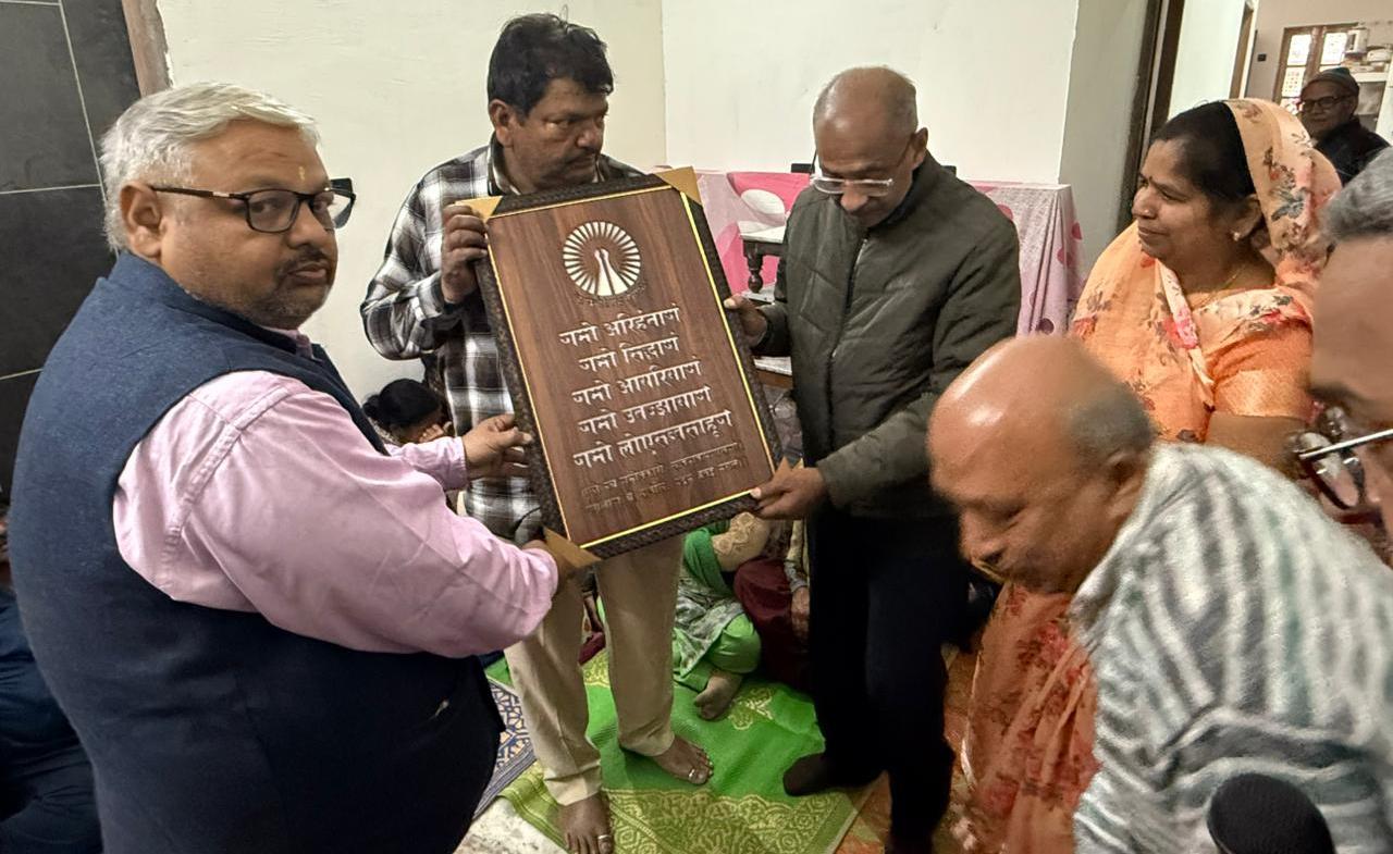 आरती करते सदस्य व आयोजकों को सम्मानित करते पदाधिकारी………….(डा. आर. के. जैन)