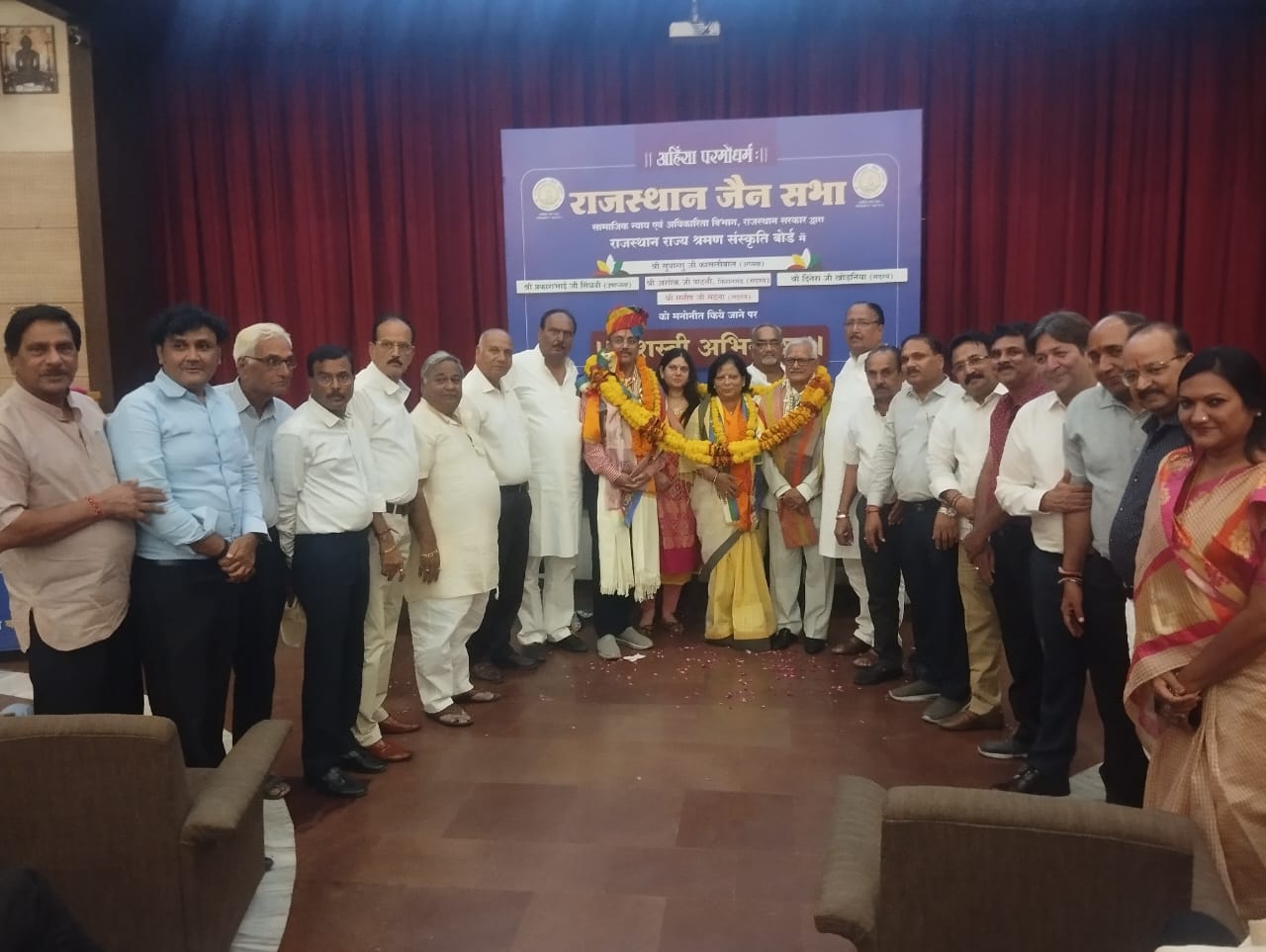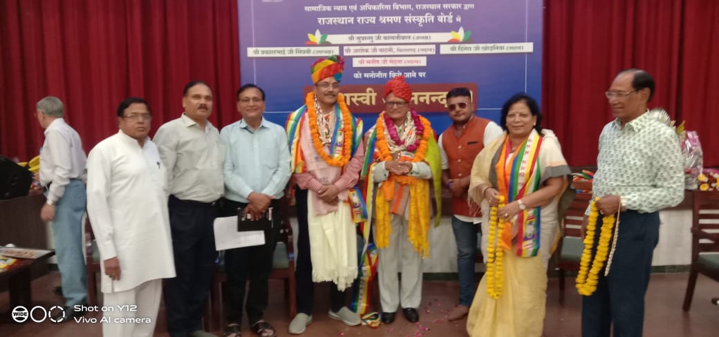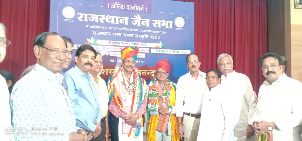 राजस्थान जैन सभा जयपुर के तत्वावधान में राजस्थान सरकार द्वारा गठित राजस्थान राज्य श्रमण संस्कृति बोर्ड में राज्य सरकार के द्वारा नियुक्त किए गये पदाधिकारियों एवं सदस्यों का शनिवार को भट्टारक जी की नसियां में हार्दिक अभिनन्दन समारोह आयोजित किया गया। जैन महासभा के प्रतिनिधि राजाबाबू गोधा ने इस कार्यक्रम में शिरकत करते हुए बताया कि नव निर्वाचित बोर्ड के अध्यक्ष सुधान्शु कासलीवाल एवं सदस्य मनीष मेहता का समाज की 51 संस्थाओं की ओर से अभिनन्दन किया गया । राजस्थान जैन सभा जयपुर के अध्यक्ष सुभाष चन्द जैन एवं महामंत्री मनीष बैद ने बताया कि बोर्ड के अध्यक्ष एडवोकेट सुधान्शु कासलीवाल सदस्य सीए मनीष मेहता सहित श्रीमती ऋतु कासलीवाल तथा संगीता मेहता का 51 संस्थाओं की ओर से तिलक, माला, दुपट्टा, शाल एवं साफा पहनाकर तथा गुलदस्ता एवं प्रतीक चिन्ह भेट कर दोनों नवनियुक्त पदाधिकारियों का अभिनन्दन किया एवं शुभकामनाएं दीं। उक्त कार्यक्रम में तोतूका सभागार में उपस्थित जैन बन्धुओं ने श्री कासलीवाल एवं श्री मेहता को मालाओं से लाद दिया। इस मौके पर सभागार भगवान महावीर के जयकारों से गुंजायमान हो उठा।