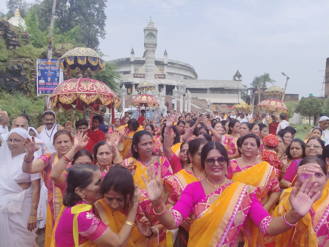 फेडरेशन ऑफ हूमड़ जैन समाज द्वारा 13 सितंबर से प्रारंभ 7 दिवसीय सम्मेशिखरजी यात्रा 20सितंबर को प्रातः जयकारों के साथ सम्पन्न हुई। यात्रा के अंतिम दिन शुभमति माताजी के मांगलिक संसंघ सान्निध्य में रथयात्रा मध्यलोक से प्रारंभ हुई जो निहारिका कॉम्प्लेक्स तक जाकर पुनः गाजे बाजे के साथ मध्यलोक तक पहुंची। रथयात्रा में शामिल सभी भक्त पुरुष श्वेत धोती दुपट्टे में थे तो बहने पीली साड़ी पहने हुए थीं। रथ यात्रा में जैसे भक्ति का ज्वार उमड़ पड़ा था। भक्त “हर साल शिखरजी में मेरी एक हाजरी हो, मुझे वही रोक लेना, जब सांस आखिरी हो”गीत कर भाव विभोर हो झूम रहे थे। फेडरेशन ऑफ हूमड़ जैन समाज के संस्थापक एवं राष्ट्रीय कार्यकारिणी सदस्य अजीत कोठिया ने बताया की शोभा यात्रा के बाद दिन में गणिनी आर्यिका माताजी शुभमति माताजी के मांगलिक सान्निध्य एवं 5आचार्यों की उपस्थिति में भव्य सम्मेदशिखरजी विधान का आयोजन हुआ जिसमे भक्तों ने 71अर्घ्य समर्पित किये।
