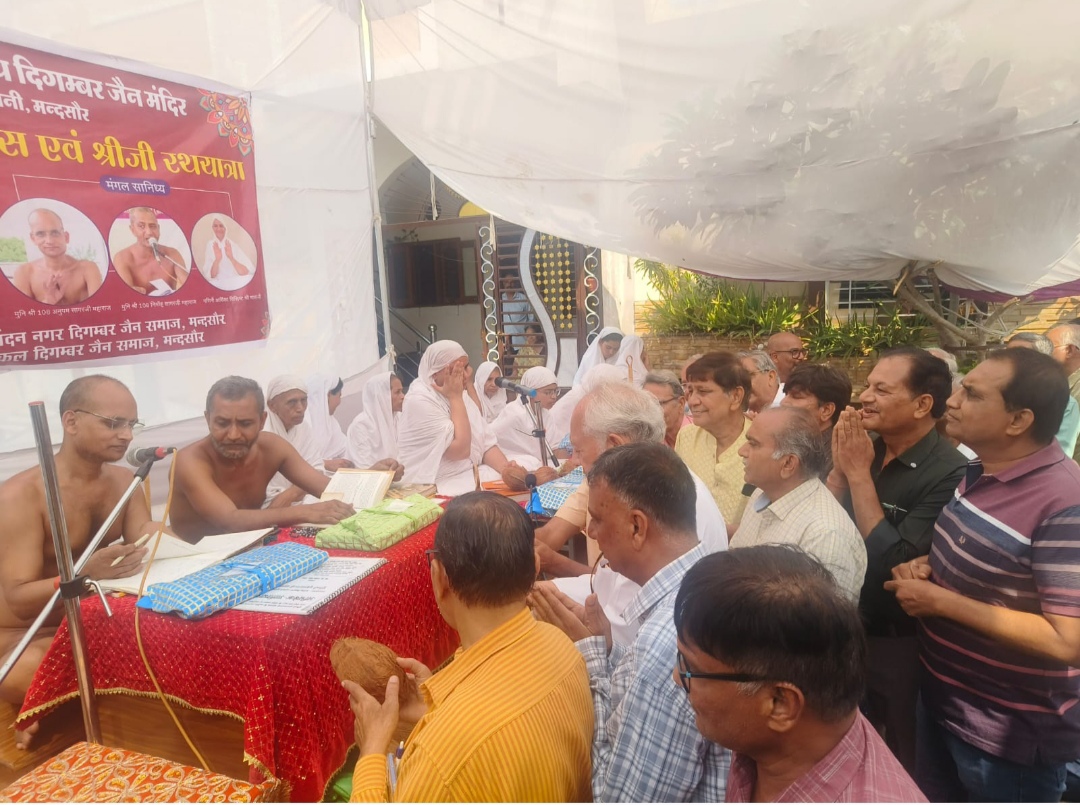 भीलवाड़ा, 15 जून- अभिनंदन नगर मंदसौर में विराजित श्रमण मुनि अनुपम सागर महाराज, मुनि निर्मोह सागर महाराज एवं आर्यिका श्री विशिष्टमति माताजी ससंघ से भेंट कर भीलवाड़ा में चातुर्मास करने हेतु श्री बाहुबली जैन वेलफेयर सोसाइटी के सुरेंद्र छाबड़ा एवं श्री महावीर सेवा समिति न्यू हाउसिंग बोर्ड शास्त्री नगर के राकेश पाटनी एवं स्वाध्याय भवन के प्रदीप चौधरी ने श्रीफल अर्पित किये।