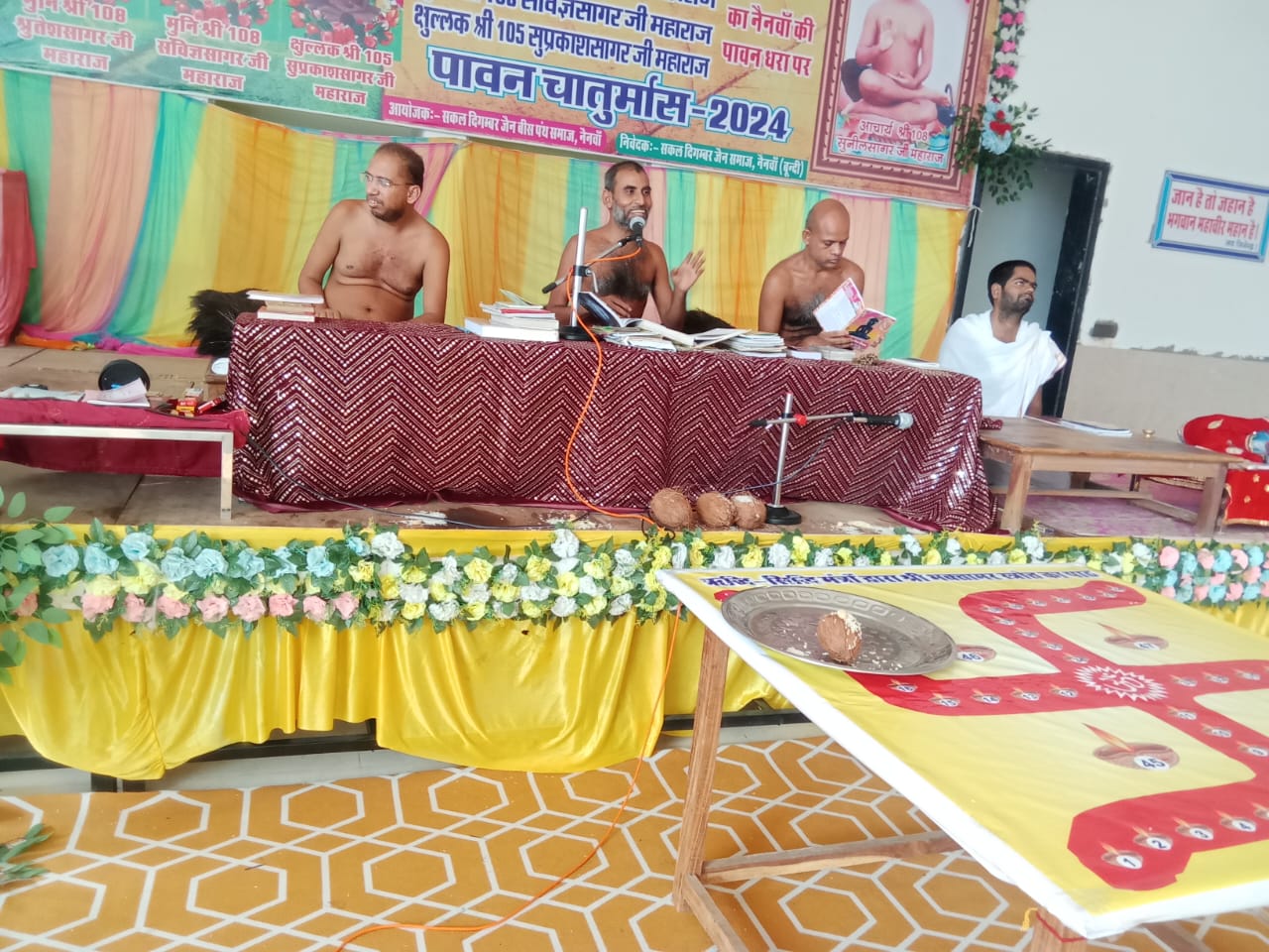 नैनंवा 4 अगस्त 2024 रविवार प्रातः 8.30 बिसपथ शांति वीर धर्म स्थल पर जैनाचार्य श्रुतेशसागर
