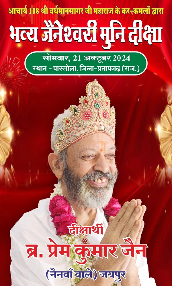 आप बहुत ही धार्मिक प्रवृत्ति के मुनि भक्तों में आपकी पहचान है आप असार संसार को त्याग कर दिगंबर अवस्था को धारण करने के भाव आपके हुए हैं