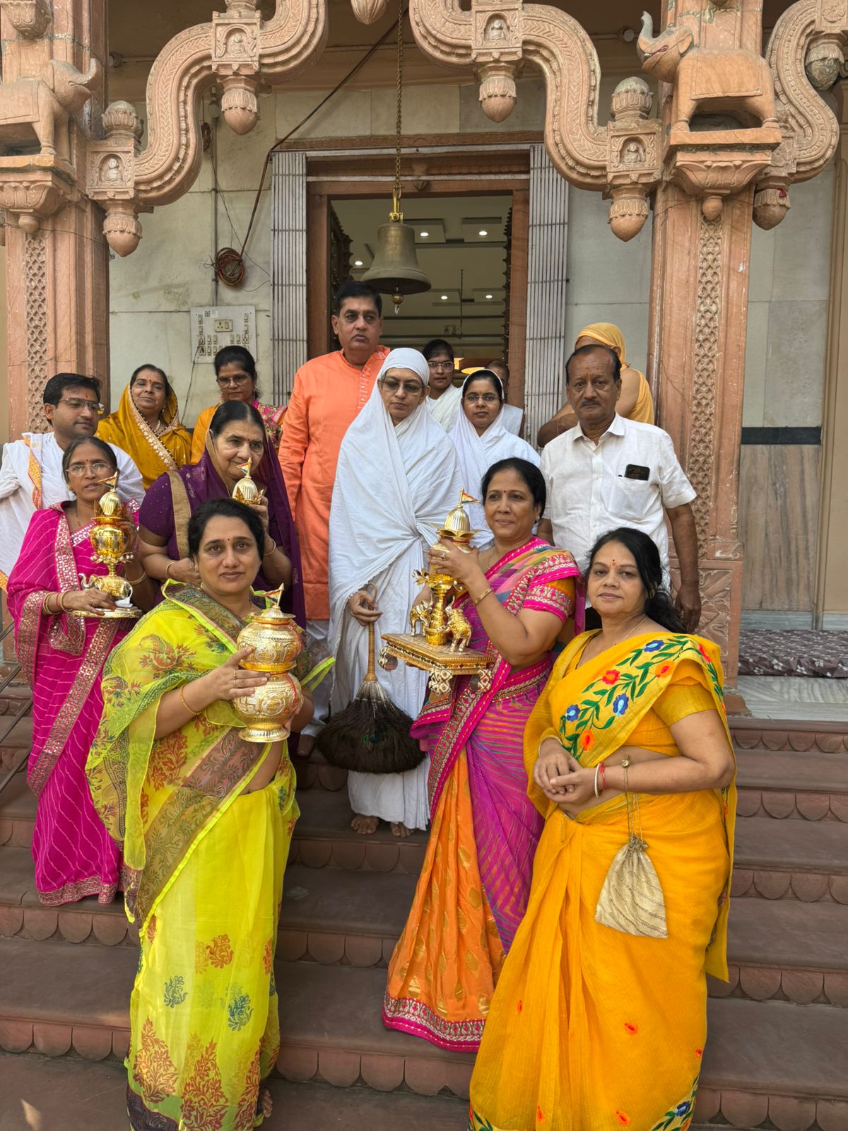 माताजी ने श्रीमती मनोरमादेवी बसंतजी पांड्या परिवार को अपने कर कमलों से चातुर्मास कलश प्रदान कर आशीर्वाद दिया। इस अवसर पर समाजसेवी श्री नरेश सेठी , श्री अजयपाल टोंग्या , श्री धर्मेंद्र पाटनी , श्री भरत काला , श्री अजय रावका , पवन बेन , सहित अनेक गणमान्य समाज जन उपस्थित थे ।
