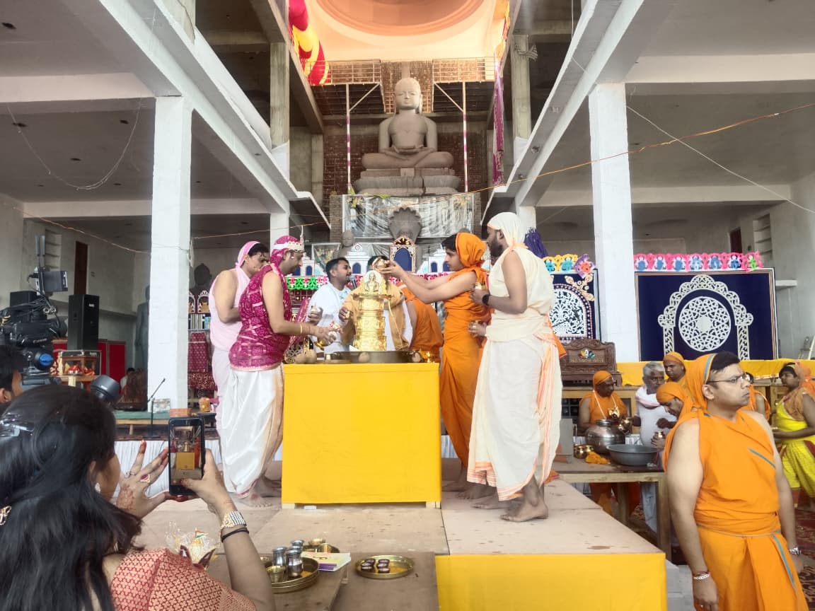 पांडुक शिला पर हुआ अभिषेक प्रतिष्ठाचार्य शुभम भैया व धीरज भैया ने बताया कि पांडुक शिला पर प्रथम जन्माभिषेक किया गया तो कुबेर ने रत्नों की वर्षा की। इस अवसर पर जैन श्रावकों में अभिषेक करने की होड़ लग गयी। महिलाएं भी मंगल गान करने लगी। गोकुल राम ट्रस्ट द्वारा आयोजित पंचकल्याणक में अध्यक्ष गोकुल जैन ने बताया कि दूरदराज व आसपास के हजारों नर नारियों ने पंचकल्याणक में भाग लेकर पुण्य का संचय किया है। सभी का आभार प्रकट करते हुए कहा कि मैं अभिभूत हूँ जो आप सब का महत्वपूर्ण योगदान प्राप्त हुआ है।