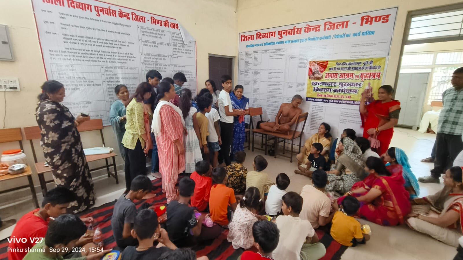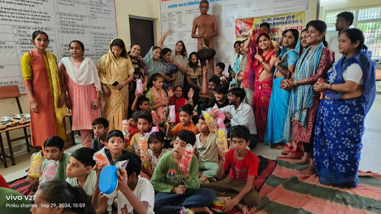 जिन मंदिर जीर्णोद्वारक संत, प्रशांत मूर्ति श्रमण मुनि श्री 108 विनय सागर जी गुरुदेव के सानिध्य में आज अनाथ आश्रम , व्रदाश्रम में फल वितरण,पुरुस्कार वितरण का आयोजन किया गया पूज्य गुरुदेव ने कहा कि वृद्ध हमारे सम्माननीय और समाज की नींव हैं। बुजुर्गों का सम्मान बहुत जरूरी है। समाज में ऐसी विकृति आ गई है कि लोग अपने ही परिवार के मुखिया को वृद्धाश्रम में छोड़ देते हैं। पुण्य शुद्धि वर्धक वर्षायोग कमेटी के अध्यक्ष सपना जैन ने कहा कि आज आश्रम में आकर उन्हें अहसास हुआ कि बुजुर्गों का आशीर्वाद बहुत जरूरी है। इस अवसर पर नीतेश जैन, सुनीता जैन, जितेंद्र कुमार जैन (पप्पू) पुलवाली वाले , सुमन जैन, अर्पित जैन, तनु दिव्या जैन, रोशनी जैन, रोहित जैन, अंकुश जैन, नमन जैन, अजीत जैन, हेमा जैन, नीतू जैन, सारिका जैन, मंजू जैन, शशि जैन, लक्ष्मी जैन शानवी जैन, पिंकू शर्मा, गणेश भारद्वाज आदि लोग कमेटी के मौजूद रहे