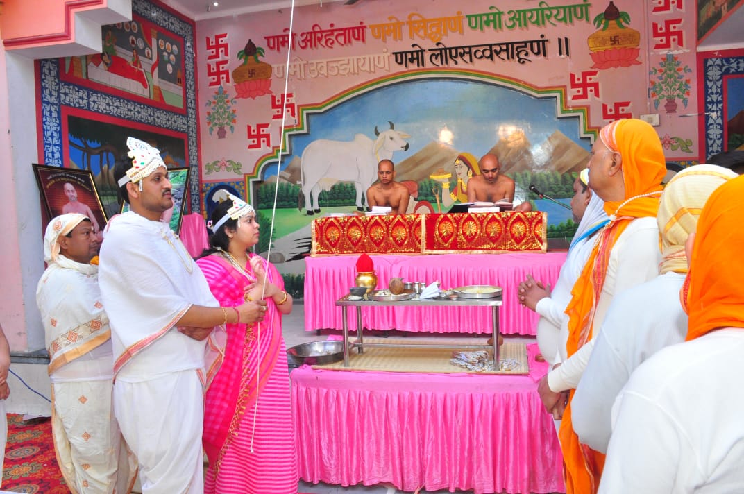 आचार्य श्री विशुद्ध सागर जी महाराज के सुशिष्य मुनि श्री अनुपम सागर जी महाराज और मुनि श्री समत्व सागर जी महाराज के पावन सानिध्य में, श्री शांतिनाथ दिगंबर जैन मंदिर कैनाल रोड बड़ोत का पंचकल्याणक प्रतिष्ठा रजत वर्ष समारोह आज प्रारंभ हुआ। जिसका शुभारंभ झंडारोहन के साथ सुनील कुमार जैन तेल वालों के द्वारा, पंडित श्रेयांस जैन के निर्देशन मे किया गया। मुनि श्री द्वारा बोले गए दिव्य मंत्रो के मध्य मूलनायक श्री शांतिनाथ भगवान की प्रतिमा की प्रथम शांतिधारा का सौभाग्य भूषण जैन नितिन जैन दिल्ली को प्राप्त हुआ। सोधर्म इंद्र सचिन जैन, कुबेर इंद्र नवीन जैन, यज्ञनायक आशीष जैन,ईशान इंद्र राहुल जैन,सानत इंद्र अंकित जैन और माहेंद्र इंद्र संदीप जैन द्वारा इस अवसर पर भावविभोर होकर प्रभु की भक्ति की गयी।