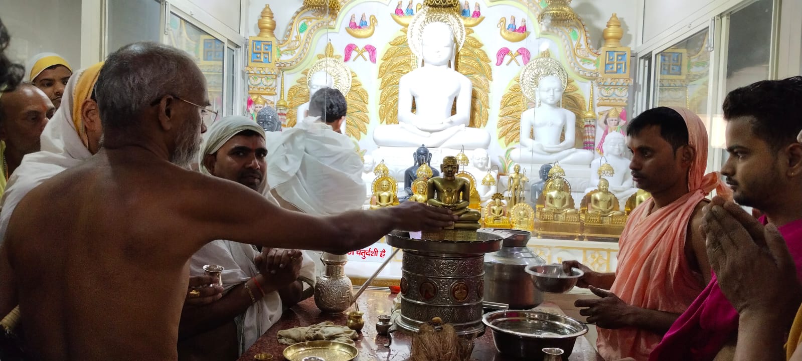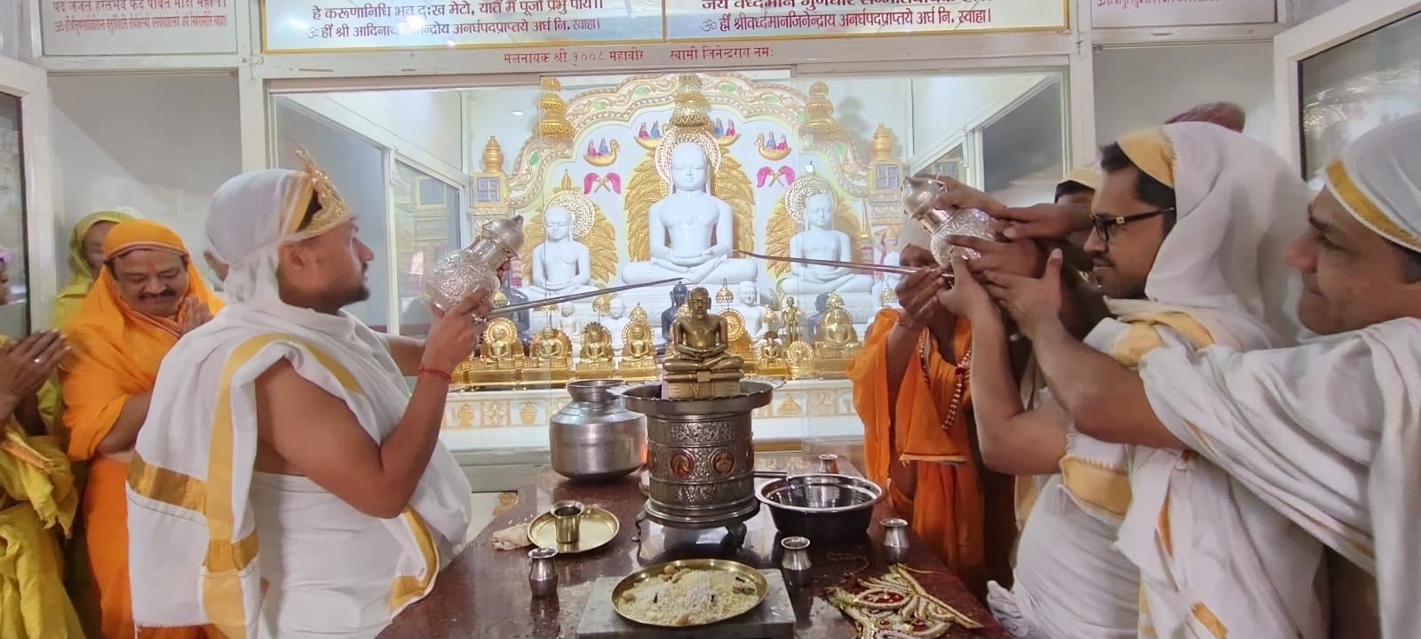 भिण्ड नगर मै विराजमान परम पूज्य आचार्य श्री 108 विनिश्चय सागर जी महाराज ससंघ सानिध्य मै दिनांक 26 नवम्बर को प्रातः 8:00 बजे महावीर गंज मैं स्थित मूलनायक श्री 1008 चंद्रप्रभु भगवान का महा मस्तकाभिषेक हर्षोल्लास के साथ सम्पन्न हुआ।आचर्य गुरुदेव ने अपनी अमृत वाणी से प्रवचन दिए, भक्तजनो ने कार्यक्रम मैं शामिल होकर अपने पुण्य लाभ लिया एवं कार्यक्रम के पश्चात सभी के लिए स्वल्पाहार की व्यवस्था रखी गई है।