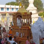मधुबन – शाश्वत सिद्ध क्षेत्र श्री सम्मेद शिखर जी मधुबन स्थित तेरहपंथी कोठी मधुबन में आज आचार्य श्री 108 शान्ति सागर जी महामुनिराज एवं आचार्य श्री 108 विद्यासागर जी महामुनिराज के 16-16 किलो के चांदी के चरण कमलों का गाजे बाजे के साथ मधुबन में भव्य और ऐतिहासिक जुलुश निकाला गया। जिसमें मुनिराज,माताजी एवं स्थानीय जैन समाज ने हिस्सा लिया