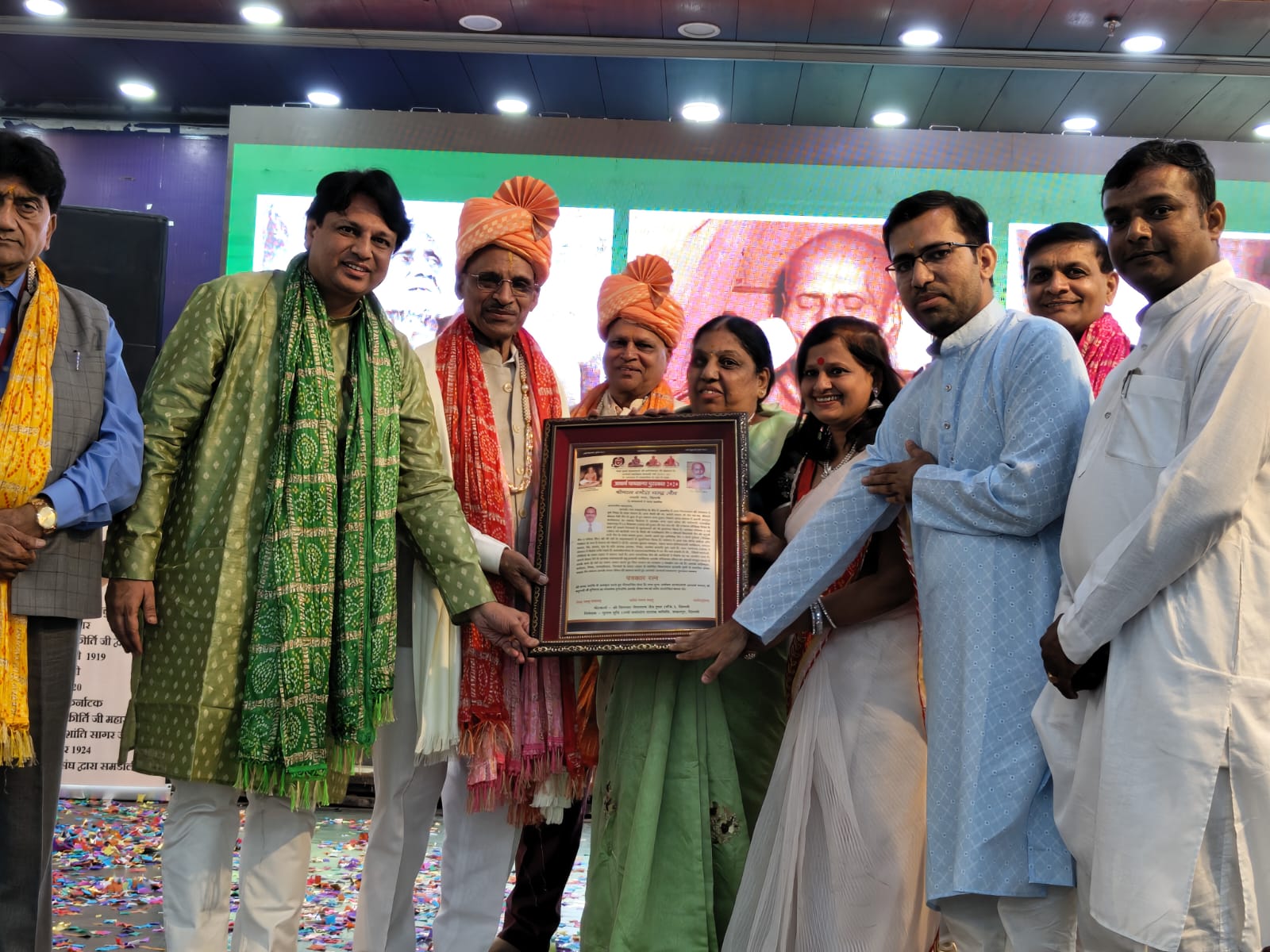 रत्न ” और ” पत्रकार रत्न ” की उपाधि से अलंकृत किया। आचार्य श्री ने दोनों को आशीर्वाद के साथ साहित्य भेंट किया।