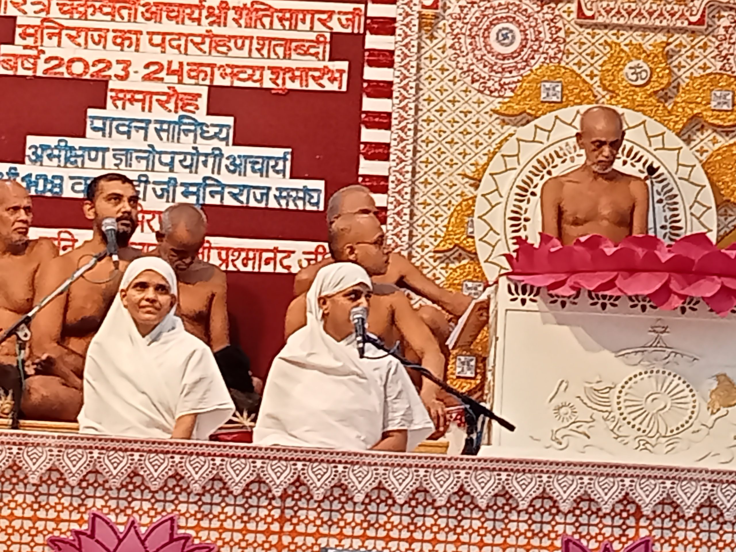नई दिल्लीः श्री दिगंबर जैसवाल जैन ट्रस्ट व युगल मुनि वर्षायोग समिति के तत्वावधान एवं आचार्य श्री वसुनंदी जी मुनिराज के संघ सान्निध्य में चारित्र चक्रवर्ती शांतिसागरजी मुनिराज ( दक्षिण ) के आचार्य पदारोहण के शताब्दी वर्ष का शुभारंभ अध्यात्म साधना केंद्र छतरपुर में 29 अक्तूबर को आयोजित भव्य समारोह में मंगल ध्वनि व जयघोष के साथ हुआ। समारोह एक वर्ष तक चलेगा। सुनील जैन ने ध्वजारोहण व सुरेश-अरुण जैन द्वारा मंच उदघाटन के बाद आचार्य श्री