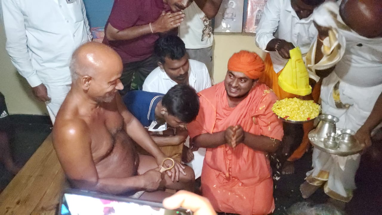 आचार्य विशुद्धसागर महाराज जी ससंघ के दर्शन हेतू श्रवणबेलगोल के स्वस्तिश्री चारुकीर्ती भट्टारक महास्वामीजी पधारे | श्रवणबेलगोल के स्वस्तिश्री चारुकीर्ती भट्टारक महास्वामीजी ने सभी मुनीराजों के दर्शन करके तत्व कि चर्चा कि |
