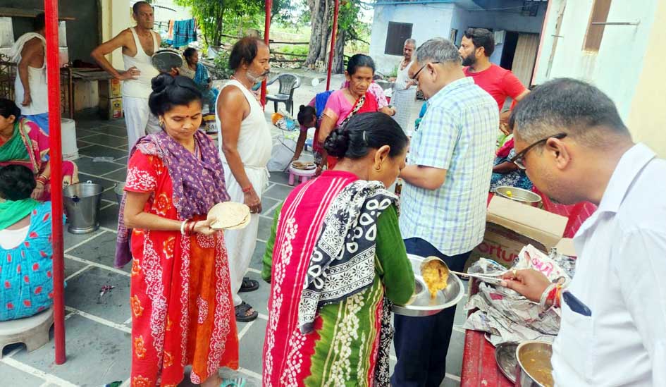 श्री महावीर दिगम्बर जैन मंदिर के तत्वधान में जैन चेरिटेबल ग्रुप के द्वारा अदित्य उप्पल व एस. के. गर्ग परिवार के सौजन्य से जगाधरी कुष्ठ आश्रम में पांचवा भोजन वितरण कार्यक्रम का आयोजन किया गया। कार्यक्रम की अध्यक्षता प्रियंकल अग्रवाल ने की तथा संचालन राजीव सूध ने किया। कार्यक्रम का शुभारम्भ णमोकार महामंत्र का उच्चारण कर किया गया। प्रियंकल अग्रवाल ने जानकारी देते हुये बताया कि जैन चेरिटेबल ग्रुप द्वारा प्रभु की कृपा से अनेक प्रकार धार्मिक व समाजिक कार्य किये जा रहे है, इसी श्रंखला में ग्रुप द्वारा हर रविवार को असहाय व जरुरतमंद लोगों को भोजन वितरित करने का निर्णय लिया है और इसी कड़ी में यह पांचवा भोजन वितरण कार्यक्रम अदित्य उप्पल व एस. के. परिवार के सहयोग से आयोजित किया गया। उन्होंने बताया कि इस प्रकार के समाज सेवा कार्य किया जाना हर प्रकार से शुभ सिद्ध होता है, क्योंकि इस प्रकार से जरुरतमंद व्यक्ति तक अन्न का दाना पहुँचाया जा सकता है। उन्होंने कहा कि हर धर्म में निस्वार्थ भाव से मानव सेवा को ही सबसे उच्च सेवा कहा गया है और समाज में बहुत से ऐसे लोग है जिन्हें दो वक्त रोटी भी नसीब नहीं हो पाती है, ऐसे में भोजन वितरण कार्यक्रम का महत्व और भी बढ़ जाता है। पुनीत गोल्डी ने बताया कि कार्यक्रम के दौरान जरुरतमंदों के लिये भोजन के रूप में सब्जी व रोटी की व्यवस्था की गई, जिसकों लगभग 60 लोगों ने ग्रहण किया। उन्होंने समाज से अग्रह करते हुये कहा कि यह बहुत ही पुण्य का कार्य है और सभी समाजों के लोगों को इसमें सहयोग देना चाहिये तथा अपने जन्मदिन, विवाह की वर्षगांठ, बच्चों के जन्मदिन व अपनों की पुण्यतिथि आदि अवसरों पर सहयोग दें ताकि यह कार्य निरंतर चलाया जा सके। इस अवसर पर अंकुर जैन, पुनीत गोल्डी जैल, नीजर जैन, आर्जव जैन, अमन सोई, सौरव सैनी आदि ने सहयोग दिया।