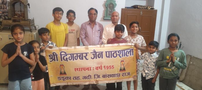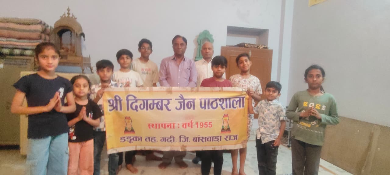 चैत्र नव वर्ष पर दिगंबर जैन पाठशाला डडूका के बच्चो और प्रेरकों के द्वारा सभी को शुभकामनाएं देकर बच्चो के उज्जवल भविष्य की कामना की। पाठशाला प्रेरक अजीत कोठिया एवं धनपाल शाह के निर्देशन में बच्चो ने जिनवाणी स्तुति, अनुशासन के नियम और महावीर स्वामी एवं आदिनाथ भगवान के जन्म कल्याणक पर्व आधारित रोचक प्रश्नमंच में 11बच्चों ने हिस्सा लिया।