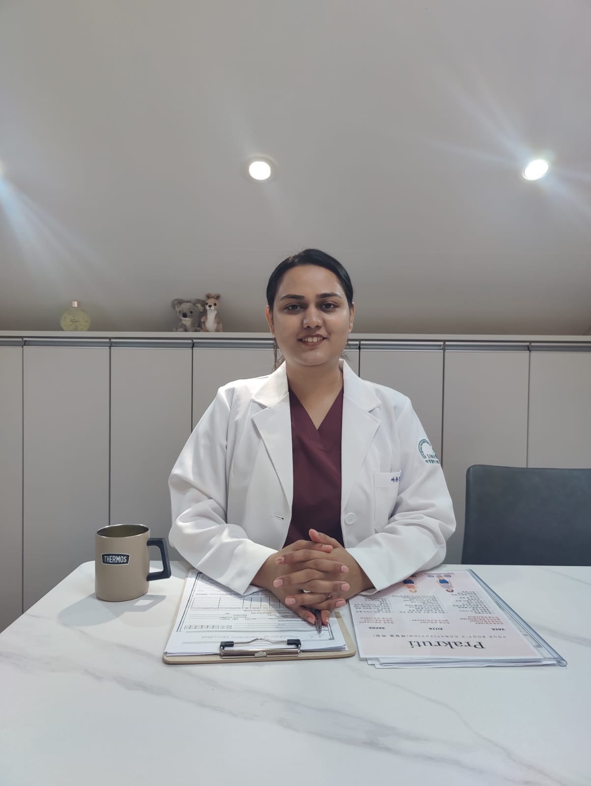माइनस 8 डिग्री सेंटीग्रेड तापमान के बीच आयुर्वेद को प्रोत्साहित करने नववर्ष 2024के प्रथम सप्ताह में कोरिया पहुंची डॉ. आस्था ने बताया कि यह एक प्राकृतिक देश है जहाँ प्रकृति को नजदीकी से महसूस किया जा सकता है। भारतीय मुद्रा सौ रुपये के पन्द्रह सौ वान मिल जाते है, वान दक्षिण कोरिया की मुद्रा है। वहाँ रहने के लिए घर आदि की व्यवस्था वेलपार्क हॉस्पीटल द्वारा की गई है।