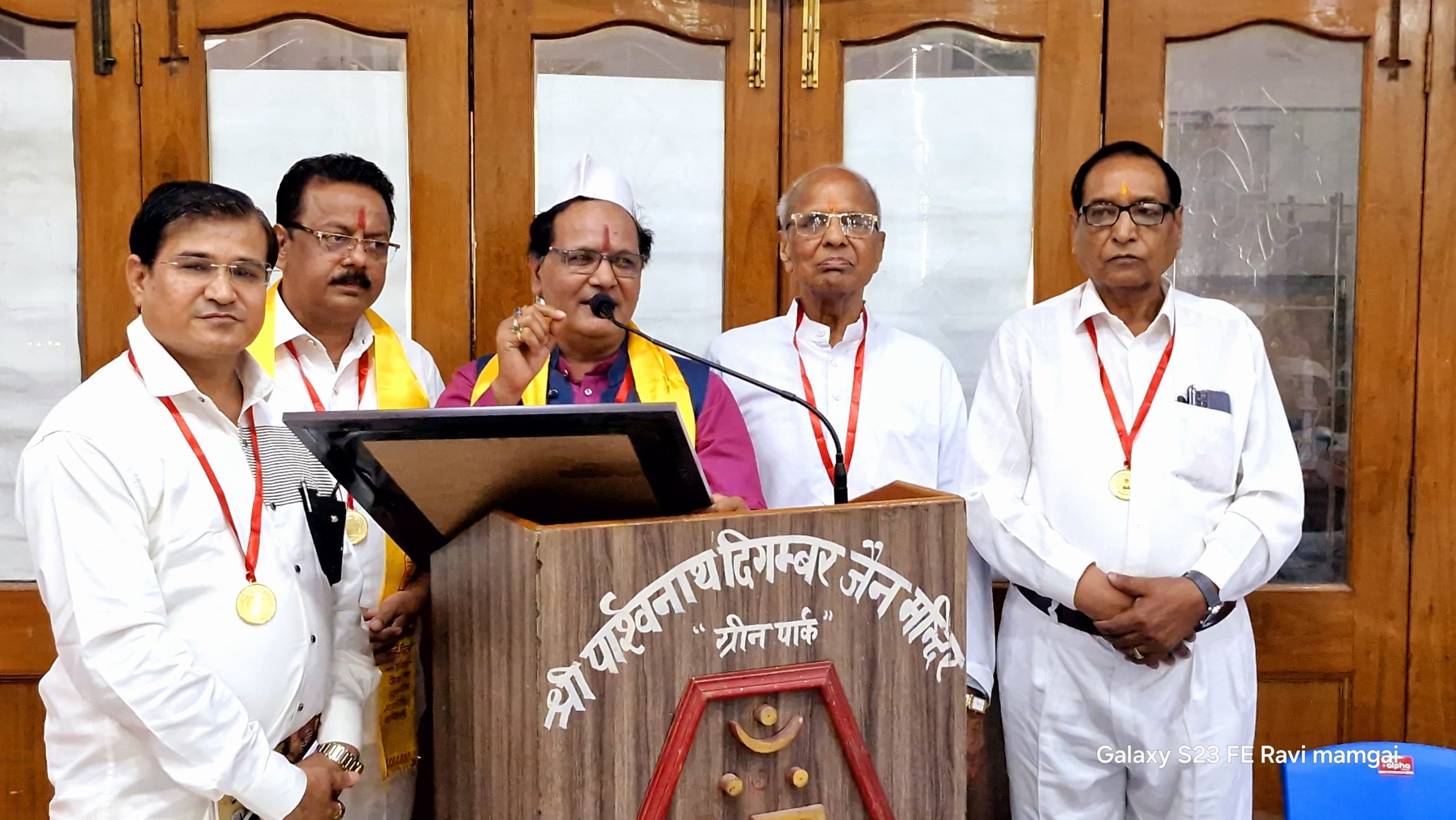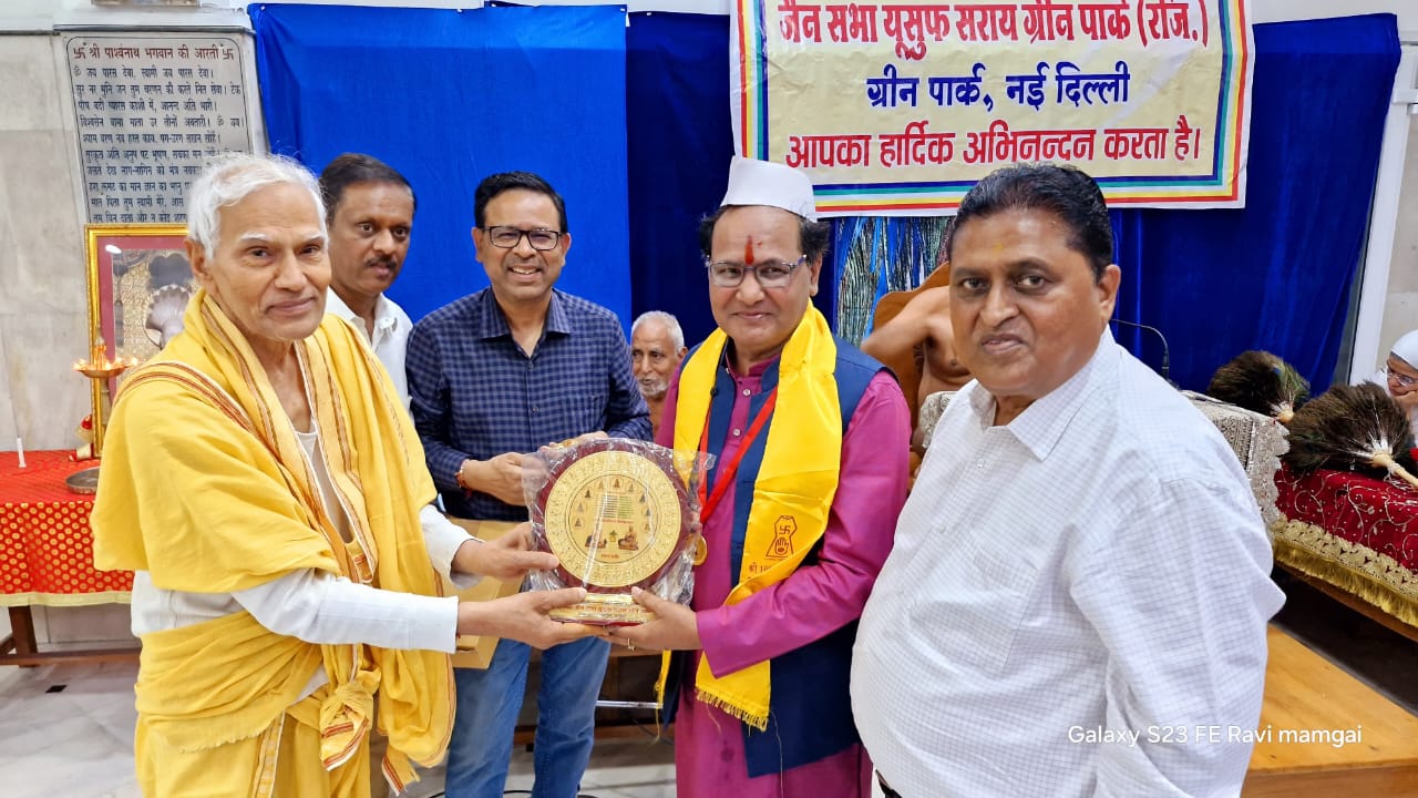 इस अवसर पर ग्रीन पार्क समिति एवं कुंद कुंद भारती ट्रस्ट ने ज्योतिष के क्षेत्र में उल्लेखनीय कार्य करने पर ज्योतिषाचार्य डॉ. हुकुमचंद जैन को शॉल, श्रीफल, मणिमाला एवं प्रशस्ति पत्र देकर सम्मानित किया।