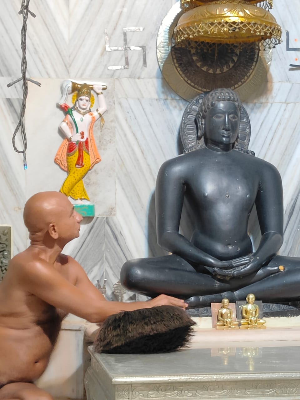नांदेड में मंगलवार को विसावा नगर स्थित जैन मंदिर की छत पर दोपहर में 40.5 डिग्री तापमान में सामायिक करते हुए आचार्य श्री 108 प्रसन्न सागरजी महाराज.