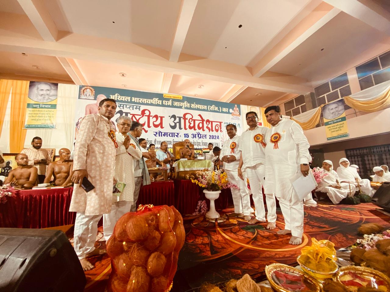 तिजारा – अखिल भारतवर्षीय धर्म जागृति संस्थान का सप्तम राष्ट्रीय अधिवेशन श्री चंद्र प्रभु अतिशय क्षेत्र देहरा तिजारा के प्रांगण में स्थित चन्द्रगिरि वाटिका में परम पूज्य आचार्य श्री वसुनंदी महामुनिराज ससंघ के सानिध्य व मार्गदर्शन में सोमवार 15 अप्रैल को भव्यता के साथ पूरे देश से पधारे क़रीब सात सो प्रतिनिधियों की उपस्थिति में आयोजित हुआ ।