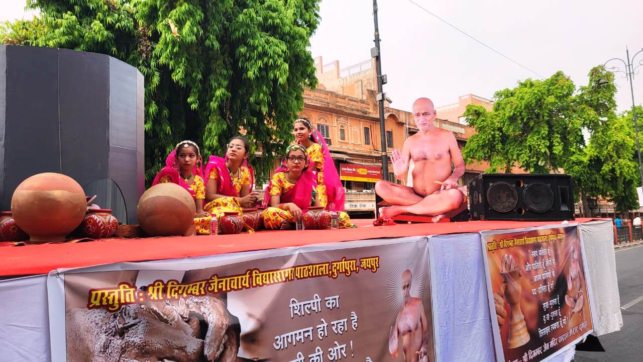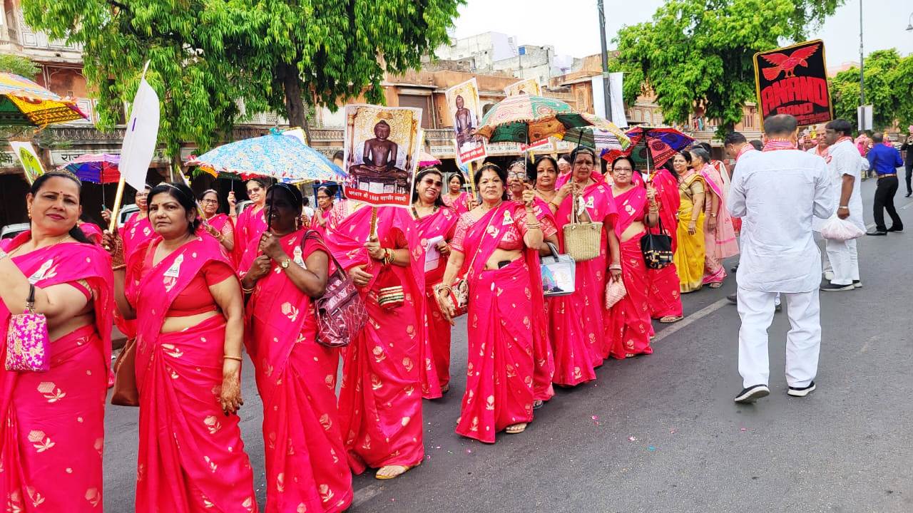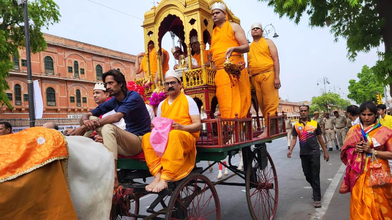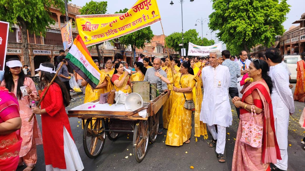 जयपुर। रविवार को देशभर में जैन धर्म के 24 वें तीर्थंकर भगवान महावीर स्वामी का जन्म कल्याणक पर्व हर्षोल्लास के साथ मनाया गया, राजधानी जयपुर में त्रिपोलिया बाजार से रामलीला मैदान तक हजारों जैन श्रद्धालुओं की उपस्थिति और आचार्य चैत्य सागर महाराज, आचार्य शशांक सागर महाराज एवं गणिनी आर्यिका विज्ञाश्री माताजी ससंघ सानिध्य में विशाल शोभायात्रा निकाली गई, राजस्थान जैन सभा के तत्वाधान में आयोजित कार्यक्रम के अंतर्गत रविवार को भगवान महावीर स्वामी को त्रिपोलिया बाजार के दिगंबर जैन मंदिर से रथ पर विराजमान कर शोभायात्रा का शुभारंभ किया गया, यह यात्रा त्रिपोलिया बाजार से प्रारंभ होकर बड़ी चौपड़, जोहरी बाजार, सांगानेर गेट, बापू बाजार होते हुए रामलीला मैदान पर संपन्न हुई, जहां विराजमान संतो और माताजी ने धर्मसभा को संबोधित किया, इस दौरान ब्रह्मचारी राकेश जैन को जैनेश्वरी दीक्षा प्रदान की गई, इस अवसर पर विराजमान आचार्य शशांक सागर महाराज का 24 वां दीक्षा दिवस भी मनाया गया। कार्यक्रम के दौरान हवामहल विधायक बालमुकुंदाचार्य, पूर्व जयपुर शहर अध्यक्ष भाजपा संजय जैन, कांग्रेस नेता संजय बापना, राजस्थान जैन सभा अध्यक्ष सुभाष जैन पांड्या सहित जयपुर जैन समाज के सभी श्रेष्ठीगण सम्मिलित हुए।