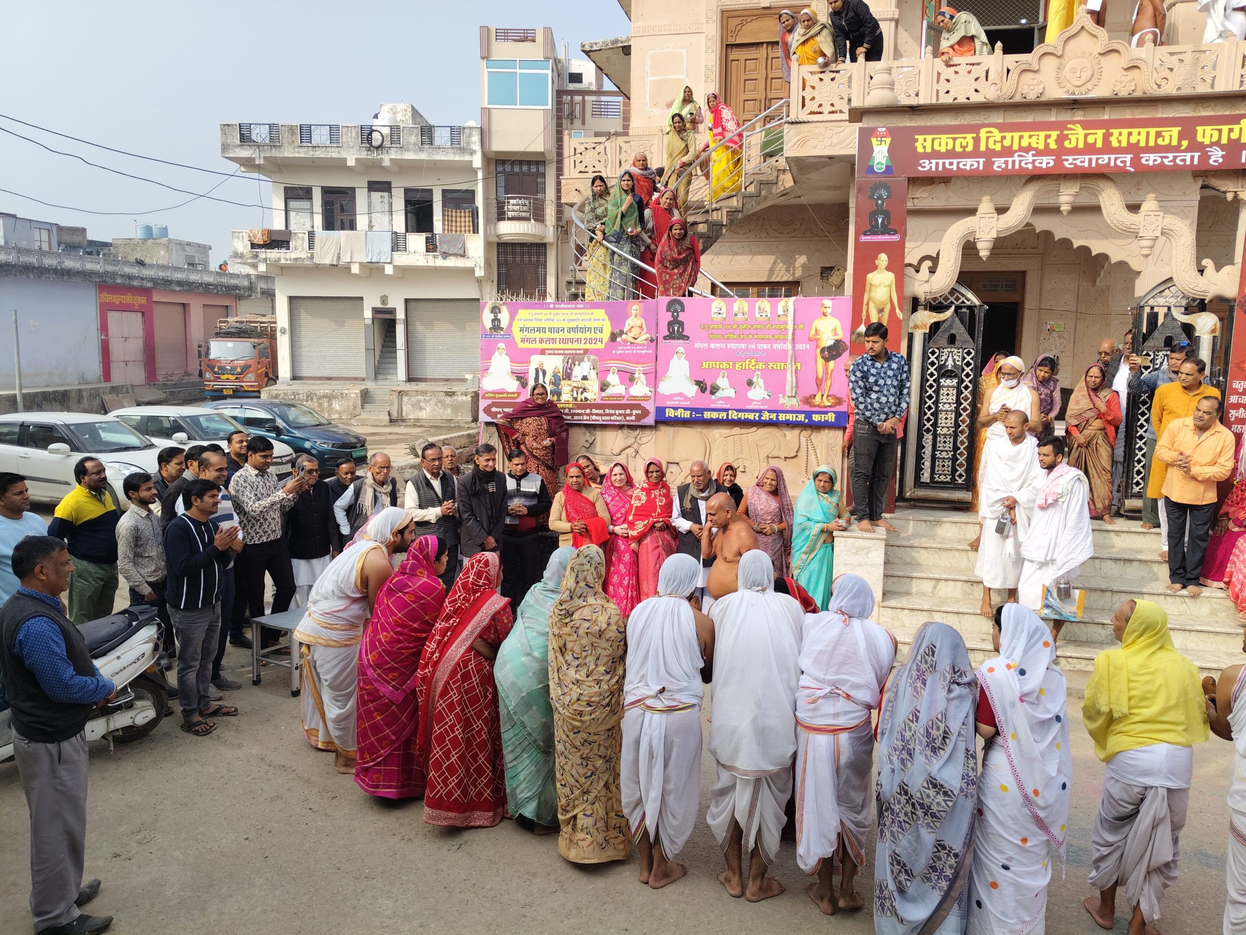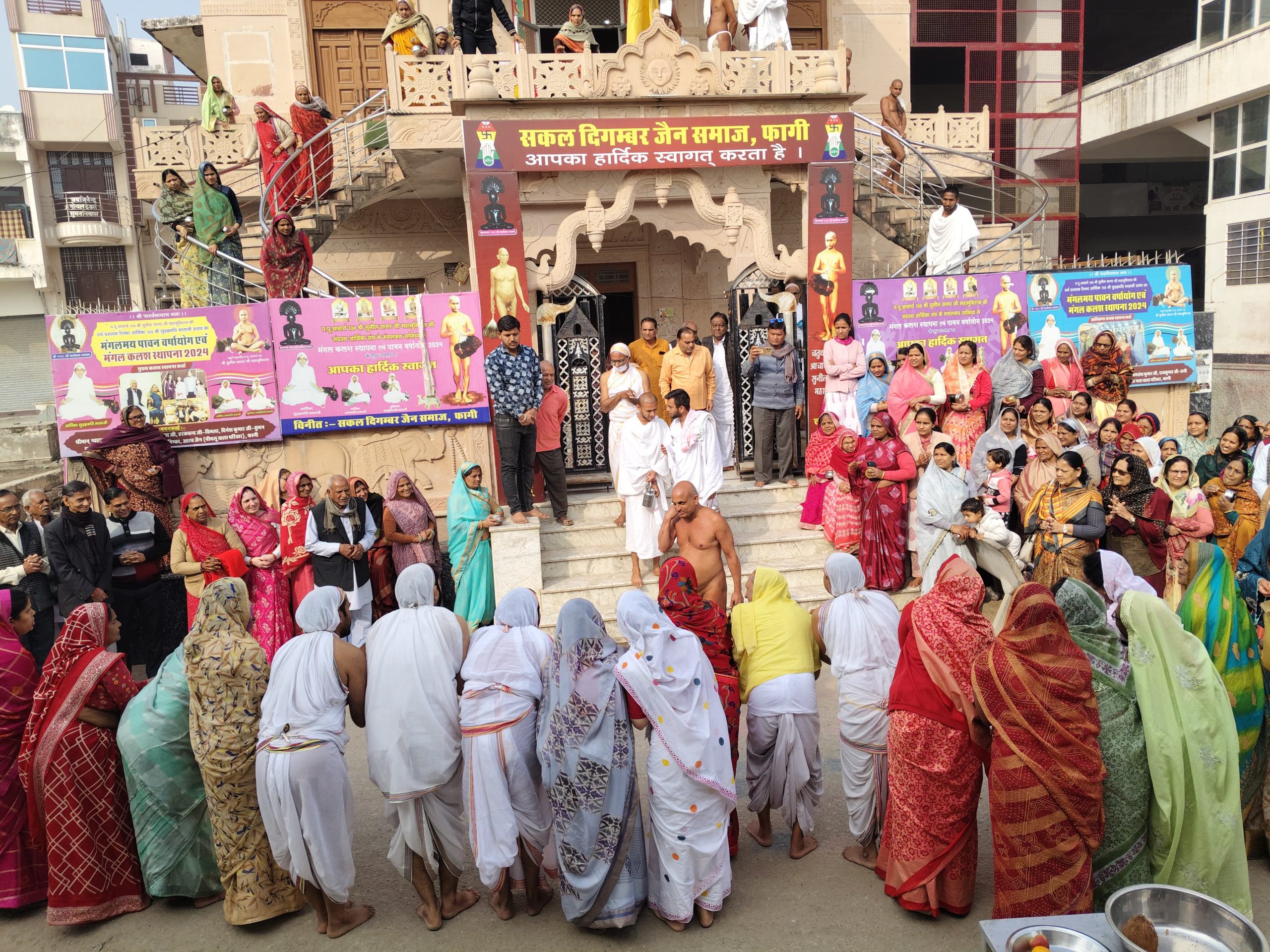 फागी कस्बे से अर्हम योगप्रणेता मुनि प्रणम्य सागर जी महाराज स संघ का आज जयकारों के साथ रेनवाल के लिए हुआ भव्य मंगल विहार