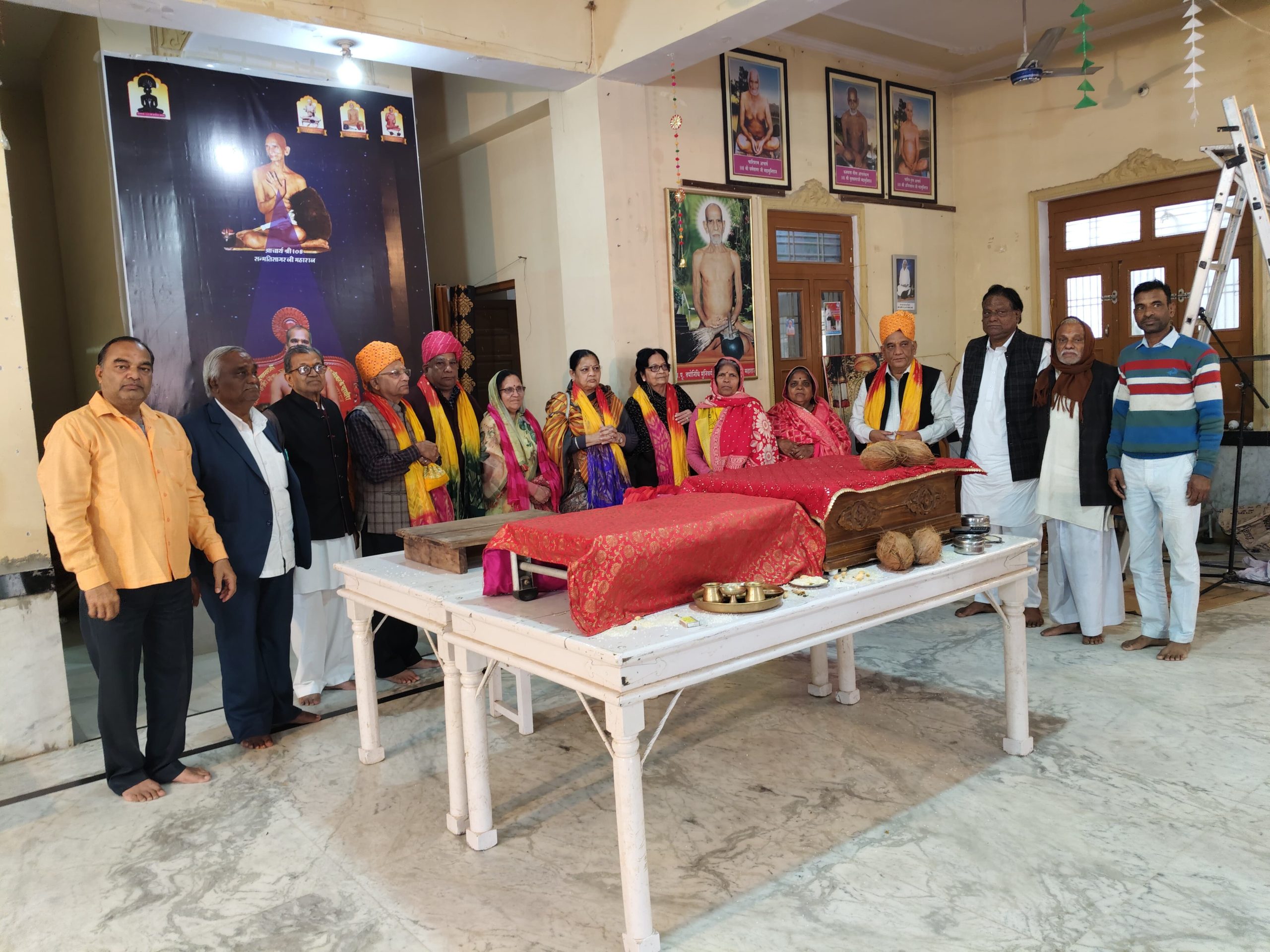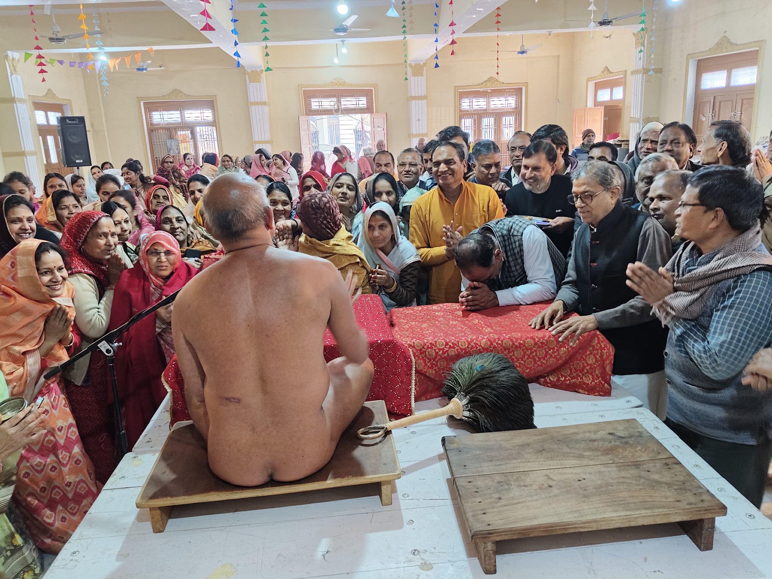 फागी कस्बे में आचार्य विद्यासागर जी महाराज के सुयोग्य शिष्य अभिक्ष्ण ज्ञानोपयोगी प्राकृत भाषा मर्मज्ञ ,अर्हम योगप्रणेता , मुनि 108 श्री प्रणम्य सागर जी महाराज स संघ का कस्बे में दो रोज धर्म की प्रवाहना बढ़ाने के बाद आज जयकारों के साथ फागी कस्बे से रेनवाल के लिए भव्य मंगल विहार हुआ, कार्यक्रम में जैन महासभा के प्रतिनिधि राजाबाबू गोधा ने शिरकत करते हुए बताया कि आज प्रातः पार्श्वनाथ चैताल्य में अर्हम योग प्रणेता मुनि प्रणम्य सागर जी महाराज , मुनि श्री 108 विश्वाक्ष सागर जी महाराज, क्षुल्लक 105 श्री अनुनय सागर जी महाराज, क्षुल्लक श्री105 सविनय सागर जी महाराज, क्षुल्लक 105 श्री समन्वय सागर जी महाराज स संघ के पावन सानिध्य में श्री जी का अभिषेक ,महाशांति धारा के बाद आर्यिका ज्ञानमती माताजी, आर्यिका विशुद्ध मति माताजी,आर्यिका श्रुति मति , आर्यिका विज्ञा श्री माताजी, तथा आचार्य वर्धमान सागर जी महाराज, आचार्य सुनील सागर जी महाराज, आचार्य समय सागर जी महाराज,पूर्वाचार्य आचार्य विद्यासागर सागर जी महाराज, मुनि गुण सागर जी महाराज, आर्यिका सुबोध मति माताजी सहित विभिन्न जैनाचार्यों सहित विभिन्न तीर्थंकरों के अर्घ्य अर्पित कर सुख समृद्धि और खुशहाली की कामना की गई, कार्यक्रम में अग्रवाल समाज फागी के अध्यक्ष महावीर झंडा,सरावगी समाज फागी के अध्यक्ष महावीर अजमेरा ने संयुक्त रूप से बताया कि कार्यक्रम में आज मुनि प्रणम्य सागर जी महाराज ने भरी धर्म सभा में श्रृद्धालुओं को अपने मंगलमय उद्बोधन में धर्म और धन की व्याख्या करते हुए सुख- दुख के बारे में बताया कि अतीत में ऐसा कोई भी जीव नहीं है जो सुख दुख का संवेदन नहीं करता है, जीवन में कभी सुख ,कभी दुख आता रहा है, मनुष्य सुख से जीवन जीता है लेकिन सुख का एहसास नहीं होता है एवं विपत्ति आने पर दुख जरुर महसूस होता है इसके उपाय के लिए मनुष्य कोई न कोई चिंतन करता रहता है, और बताया कि गृहस्थी की सबसे ज्यादा लिप्सा धन में होती है, धन के द्वारा मनुष्य घर में सभी सुविधाएं युक्त जीवन जी सकता है, घर में सभी संसाधनों से शांति का वातावरण महसूस करता है, लेकिन सुविधाओं के अभाव में, धन के अभाव में, उसकी मानसिकता कमजोर हो जाती है, मनुष्य को धन के लिए त्याग की सख्त जरूरत है, मनुष्य को गुरुओं की वाणी , गुरुओं के उपदेश,अपने जीवन में उतारने चाहिए, तभी धन एवं धर्म बढ़ेगा तथा त्याग की भावना आएगी ओर कहा कि धन के त्याग से धर्म की वृद्धि होती है तथा त्याग के बिना धर्म की वृद्धि नहीं होती है। धर्म की मूल जड़ त्याग है, आचार्यों ने कहा है कि गृहस्थी को अपने कमाए हुए धन में से 1/4 हिस्सा दान करना चाहिए ऐसा करने से उतनी ही धन की वृद्धि होगी अतः धन की वृद्धि से धर्म और धर्म की वृद्धि से अपने आप त्याग का भा