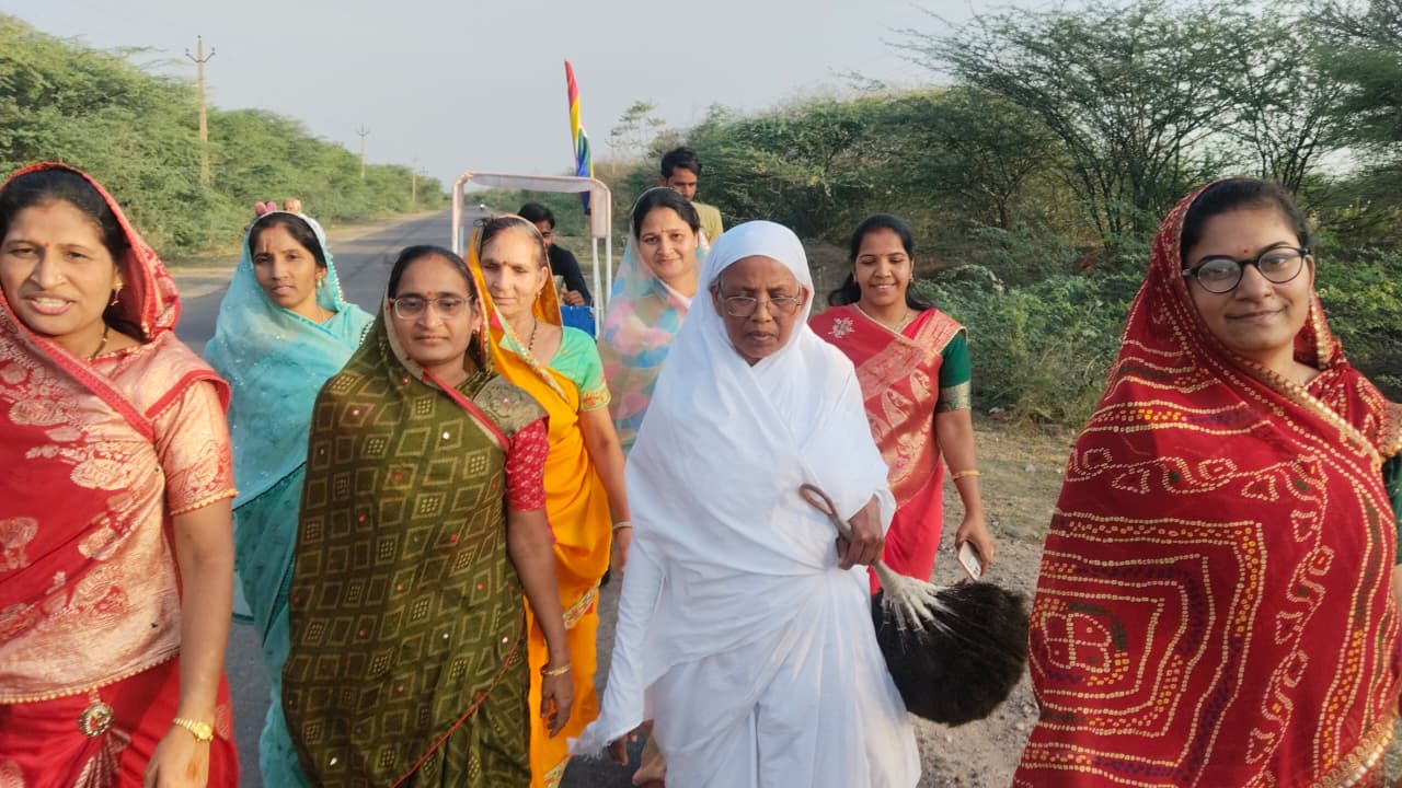 माता ने बताया मंगल प्रवेश में हमें लेने काफी भक्त महिलाएं खटकड़ देई तक गए हैं यही धर्म की बहुत बड़ी प्रभावना