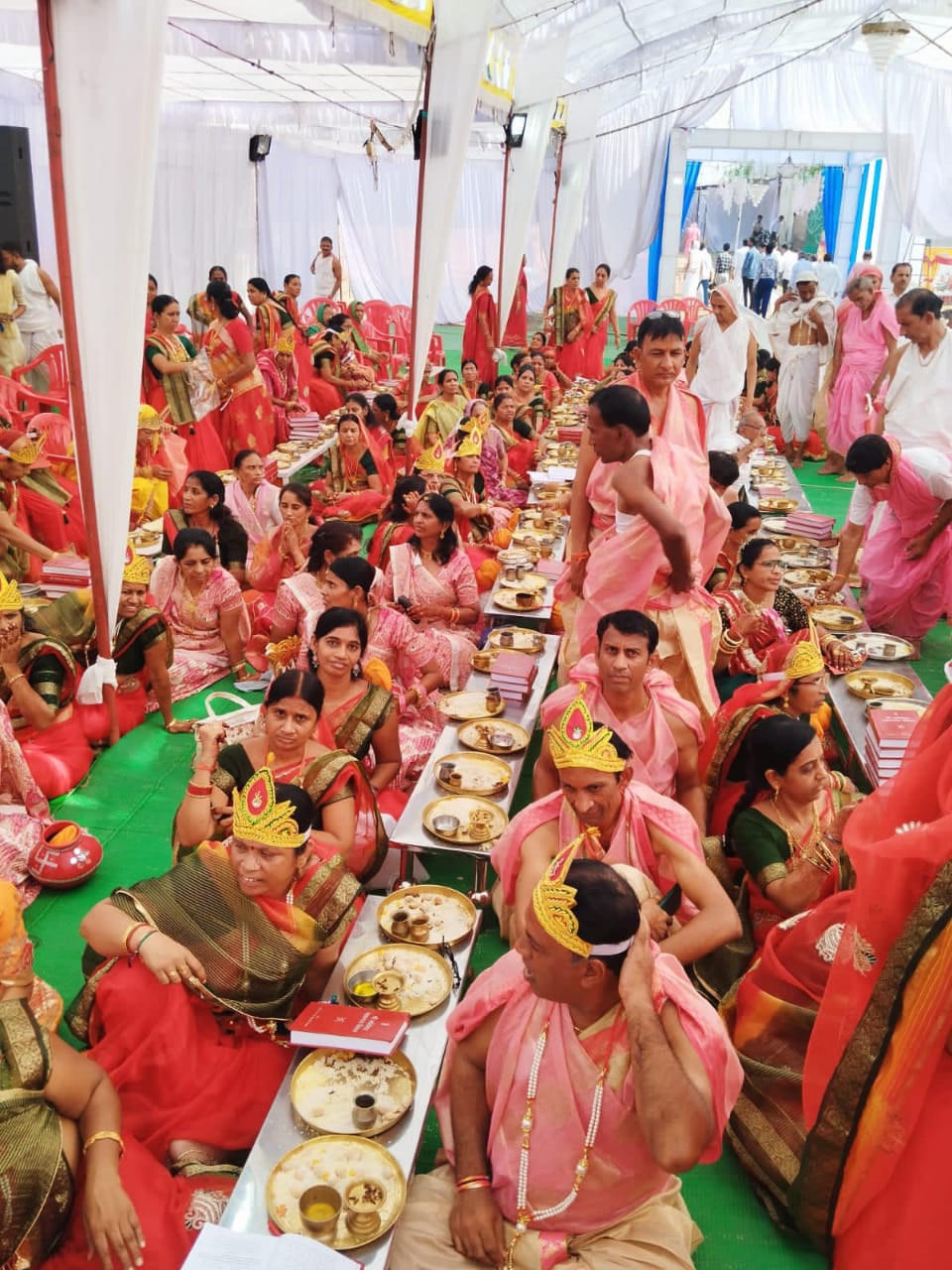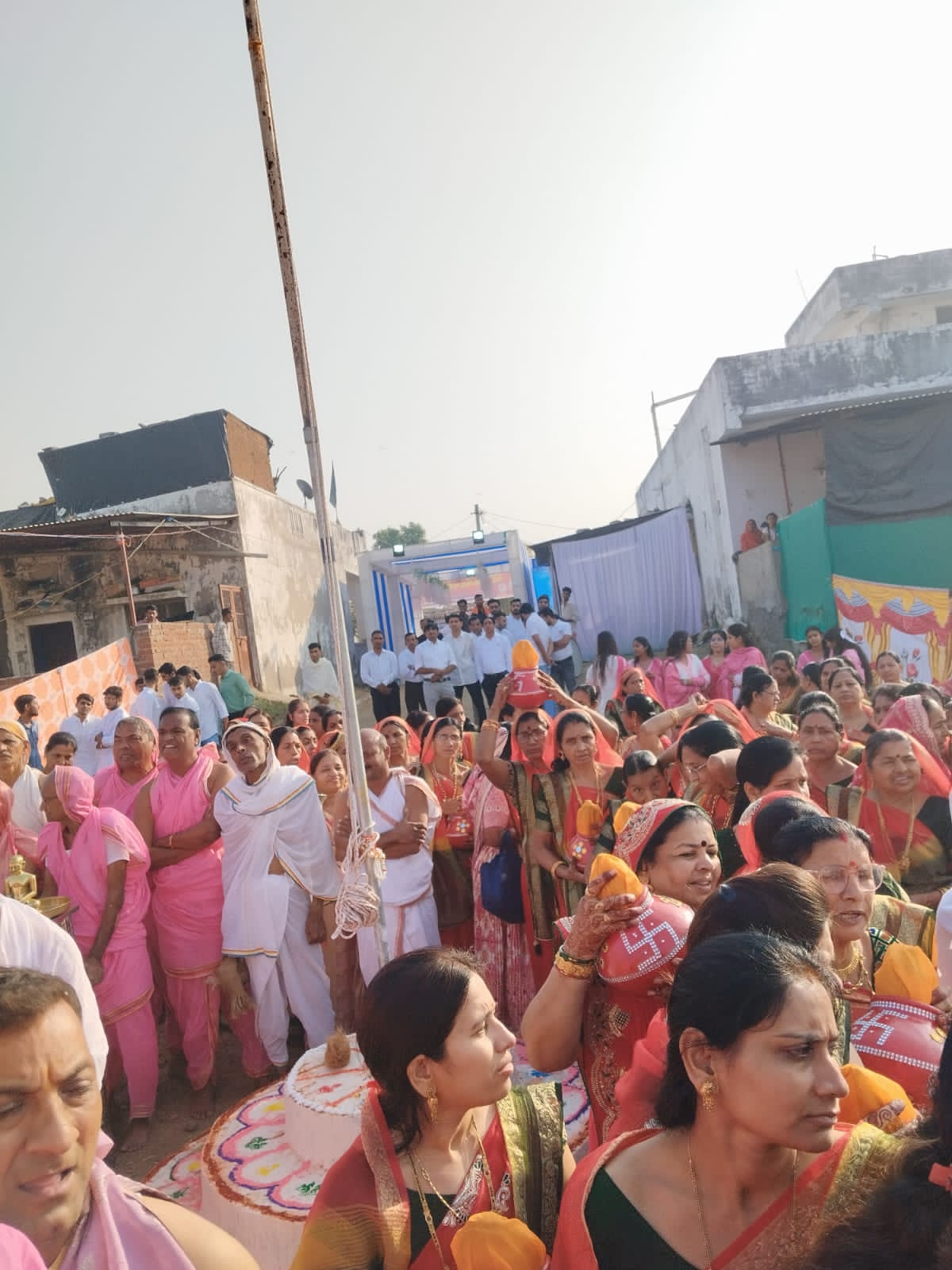 नौगामा नगरी में परम पूज्य मुनि श्री सुधा सागर जी महाराज विज्ञान मति माताजी के पावन आशीर्वाद के आर्यिका पवित्र मति माताजी स संघ के पावन सानिध्य में 9 अक्टूबर शनिवार को दस दिवसीय सर्वतोभद्र महामंडल विधान का भव्य शुभारंभ हुआ कार्यक्रम में समाज के प्रवक्ता सुरेश गांधी ने बताया कि प्रातः आदिनाथ मंदिर, समवशरण मंदिर और नसियाजी में विशेष शांति धारा अभिषेक के बाद विशाल शोभा यात्रा निकाली गई जिसमें 101 सौभाग्यवती महिलाओं के द्वारा कलशो में जल भरकर भव्य घट यात्रा निकाली गई तथा पांच भगवानों की प्रतिमाओं के साथ विशाल शोभा यात्रा नगर भ्रमण करते हुए बेंड बाज़ों के साथ श्री जी के जयकारों के साथ निकाली गई जिसमें महिलाएं केसरिया शस्त्रों मे एवं पुरुष सफेद वस्त्रो मे एवं जैन पाठशाला के छात्र जैन धर्म ध्वजा लेकर में शोभा यात्रा में चल रहे थे । शोभायात्रा मुख्य मार्गो से होती हुई विधान पंडाल पहुंची, जहां पर विभिन्न मंत्रोच्चारणों के द्वारा धर्म ध्वजा का झंडा रोहण किया गया, झंडा रोहण करने का सौभाग्य पंचोरी संदीप राजेंद्र के परिवार को प्राप्त हुआ। उसके बाद महिलाओं द्वारा पंडाल शुद्धिकरण इंद्र प्रतिष्ठा अनिल भैया द्वारा कराई गई कार्यक्रम में संमवशरण में सौ धर्मे इन्द्र ,कुबेर इंद्र, भरत चक्रवर्ती द्वारा श्रीजी विराजमान किए गए। पांडाल में विधानाचार्य रमेश चंद्र गांधी के द्वारा सभी इन्द्रों का सकलीकरण करवाया गया ,भरत चक्रवर्ती सुभाष चंद्र नानावटी ,कैलाश जैन, दीपक पंचोली ,भरत पंचोली द्वारा गंधकुटी विराजमान कर श्रीजी का अभिषेक किया कार्यक्रम में संपूर्ण विधान के द्रव्य पुण्यार्जक पंचोरी प्रदीप कुमार, लक्ष्मी लाल जी को सौभाग्य प्राप्त हुआ कार्यक्रम में अभिषेक के पश्चात पूजन एवं सर्वतोभद्र विधान के अर्घ्य चढ़ाए गए।परम पूज्य पवित्रमति माताजी ने अपने मंगलमय उद्बोधन में कहा कि नौगामा नगर के धर्मावलंबियों का सोभाग्य है कि साधु संतों के सानिध्य में सर्वतो भद्र विधान करने का सौभाग्य प्राप्त हो रहा है । यह विधान आत्म शुद्धि करने का विधान है एवं सर्वत्र सुख शांति रहे ऐसी मेरी कामना है ,इस अवसर पर करण मति माताजी, गरिमा मति माताजी का भी मंगल प्रवचन हुआ, दोपहर में नंदीश्वर दीप विधान माताजी के सानिध्य में सामूहिक पूजन के साथ महिला मंडल द्वारा किया गया, शाम को महाआरती प्रवीण कुमार, अमृतलाल के परिवार जनों के द्वारा गाजो बाजों के साथ के साथ महा आरती का थाल सजाकर विशाल जन समूह के साथ पंडाल में पहुंचकर गीतकार राजेश जैन के मधुर स्वर लहरों के साथ आरती की गई । इस अवसर पर चातुर्मास समिति अध्यक्ष निलेश जैन, उपाध्यक्ष राजेंद्र गांधी, उपाध्यक्ष नरेश जैन, नवयुक मंडल अध्यक्ष मुकेश गांधी, कोषाध्यक्ष रमलाल 