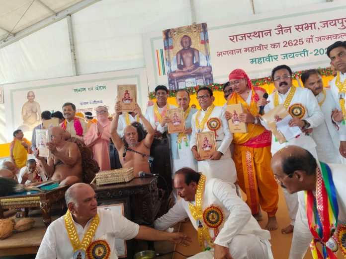 जयपुर 30 मार्च । पूरी दुनिया को’ जीओ और जीने दो’ का दिव्य संदेश देने वाले, अहिंसा धर्म के प्रणेता, विश्ववंदनीय भगवान महावीर स्वामी का 2625 वां जन्म कल्याणक महोत्सव (जयन्ती समारोह) सोमवार को गुलाबी नगरी जयपुर में धूमधाम से मनाया गया,इस दौरान सुबह से ही शहर का चप्पा-चप्पा भगवान महावीर के जयकारों से गूंजता रहा, कार्यक्रम में राजस्थान जैन सभा शाखा फागी के महामंत्री राजाबाबू गोधा ने शिरकत करते हुए बताया कि मुख्य आयोजन राजस्थान जैन सभा, जयपुर के तत्वावधान में वात्सल्य वारिधि 108, आचार्य वर्धमान सागर महाराज ससंघ एवं व्याख्यान वाचस्पति आचार्य प्रज्ञा सागर महाराज ससंघ के पावन सानिध्य में न्यूगेट के रामलीला मैदान पर हुआ,इस मौके पर ध्वजारोहण,दीप प्रज्ज्वलन, स्मारिका विमोचन, पहली बार 24 तीर्थंकरों के 24 पाण्डुक शिलाओं पर एक साथ कलशाभिषेक तथा 2625 चंवर एक साथ ढुलाने सहित धर्मसभा का भव्यता से आयोजन हुआ। उक्त