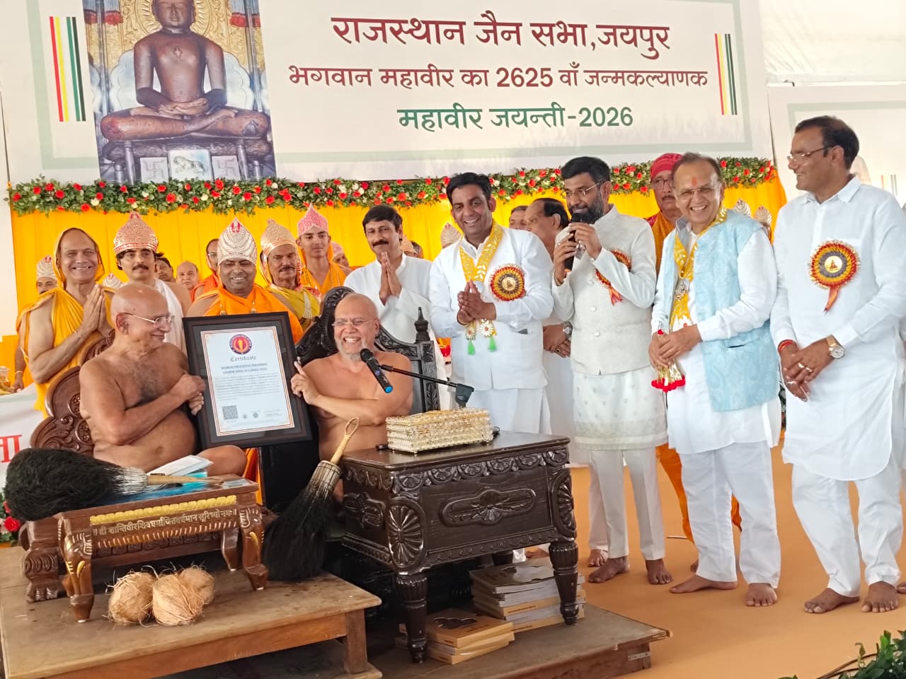 इस दौरान 2625 श्रद्धालुओं ने एक साथ 2625 चंवर ढुलाकर भक्ति करते हुए विश्व कीर्तिमान बनाया, कार्यक्रम में वर्ल्ड रिकार्ड बुक आफ इंडिया ने अधिकतम लोगो ने एक स्थान पर चंवर लेकर भक्ति नृत्य करने के लिए वर्ल्ड रिकार्ड का खिताब दिया। राजस्थान जैन सभा ने राष्ट्रीय गुरु आस्था परिवार को वर्ल्ड रिकार्ड का खिताब भेंट किया,इस मौके पर दिगम्बर जैन अतिशय क्षेत्र श्री महावीर जी के यशस्वी अध्यक्ष सुधान्शु कासलीवाल की अगुवाई में श्री महावीर जी अतिशय क्षेत्र कमेटी ने सदस्यों ने आचार्य वर्धमान सागर महाराज को जिनवाणी भेंट कर धर्म लाभ प्राप्त किया तथा नन्द किशोर ,प्रमोद ,सुनील पहाडियाँ परिवार को पाद पक्षालन करने का सौभाग्य प्राप्त हुआ।