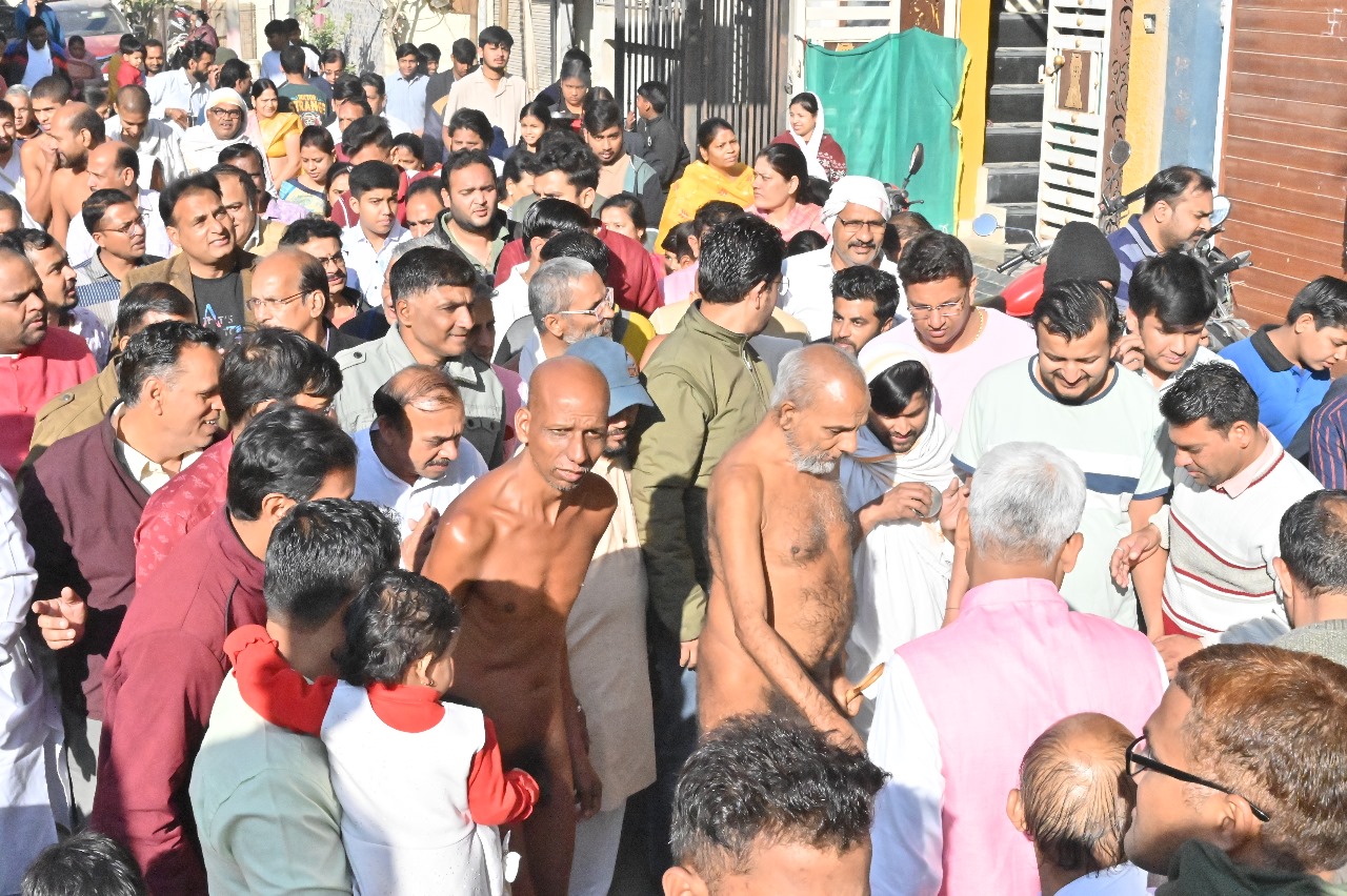 इस अवसर पर मुनि श्री निर्वेगसागर महाराज मुनि श्री संधान सागर महाराज सहित समस्त क्षुल्लक महाराज मंचासीन थे। धर्म समाज प्रचारक राजेश जैन दद्दू ने बताया कि स्मृति नगर जैन समाज ने आज सुबह भव्य अगवानी कर गुरु देव के पाद प्रक्षालन आरती कर स्मृति नगर में प्रवेश करवाया इस अवसर पर सचिन जैन प्रफुल्ल जैन तरुण भैया आदि उपस्थित थे कार्यक्रम का संचालन अभय भैया ने किया।उपरोक्त जानकारी देते हुये राजेश जैन दद्दू एवं प्रवक्ता अविनाश जैन ने बताया प्रारंभ में आचार्य श्री के चित्र का अनावरण एवं दीपप्रज्वलन प्रगति स्कूल के संचालक एवं धर्म प्रभावना समिति के पदाधिकारियों ने किया।तत्पश्चात मुनि श्री का पादप्रछालन एवं कर कमलों में सौभाग्यशाली पात्रों द्वारा शास्त्र भेंट किये गये इस अवसर पर धर्म प्रभावना समिति के अध्यक्ष अशोक डोसी आनंद नवीन गोधा महामंत्री हर्ष जैन सहित बहूत बड़ी संख्या में स्मृति नगर के पारसनाथ दि. जैन मंदिर, मुनिसुव्रतनाथ दि. जैन मंदिर,के साथ दिव्याप्लेश,संगमनगर,अशोक नगर, तथा प्रगति कान्वेंट स्कूल के संचालकों छात्र छात्राओं तथा श्रावक श्राविकाओं ने श्री फल अर्पित किये।