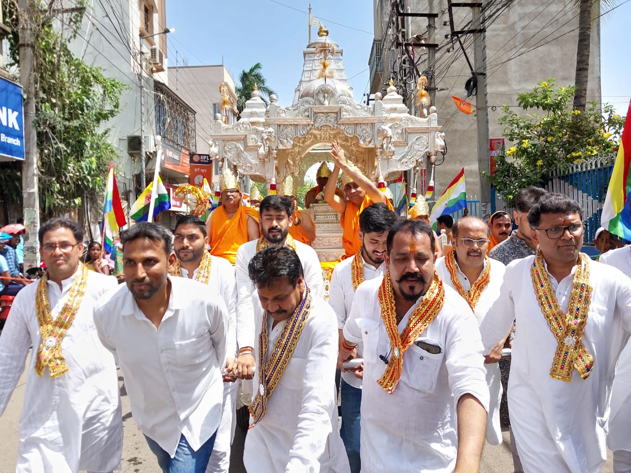 धुलियान पश्चिम बंगाल(21.04.24)- आज सुबह का आगाज प्रभात फेरी के साथ हुआ, कलश शातिंधारा व पुजन के बाद रथ में भगवान को विराजमान कर भव्य जुलुस निकाला गया, पुरुष वर्ग सफेद वस्त्र व महिलाए केशरीया वस्त्र धारण कर जुलुस की शोभा बड़ा रहै थे..जुलुस में गुंज रहा था.. भगवान महावीर की जय.., अहिंसामय जैन धर्म की जय.., आज का दिन क्या चाहता है.. शांति.. शांति का एक मात्र उपाय अहिंसा से.., अहिंसा के पुजारी भगवान महावीर का दिव्य संदेश ‘जिओ और जिने दो’.., आंधी हो तुफान हो आगे बढ़कर जाना है महावीर की वाणी को घर-घर तक पहुचाना है.. “जिसकी विश्व में आज बहुत जरूरत है ” …उसके बाद भगवान महावीर स्वामी का मस्तकाभिषेक हुआ, धुलियान में जो होम्योपैथिक दातव्य औषधालय चल रहा है उसके लिए दान निकला गया, दोपहर को महावीर चालीसा, सांय: को महाआरती के पश्चात भगवान को पालकी में झुलाने का कार्यक्रम हुआ तदपश्चात धार्मिक सांस्कृतिक अनुष्ठान का आयोजन रखा गया, सबने अपना प्रतिष्ठान जन्म कल्याणक के दिन पुर्ण रूप से बंद रखा |