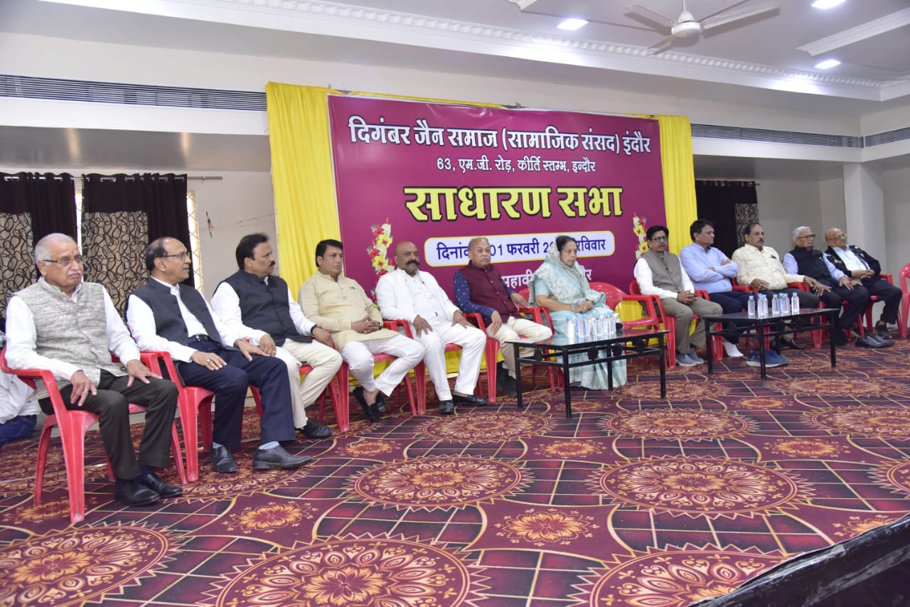 दिगंबर जैन समाज सामाजिक संसद कीर्ति स्तंभ की एक विशेष साधन सभा एरोडृम रोड स्थित महावीर बाग में संपन्न हुई जिसमें नगर के135 मंदिरों के 400 सांसद प्रतिनिधि एवं सैकड़ो की संख्या में समाज के वरिष्ठ जन सम्मिलित हुए और करतल ध्वनि के बीच सर्वसम्मति से यह निर्णय लिया गया कि पिछले कुछ दिनों से समाज में अध्यक्ष के चुनाव को लेकर उत्पन्न गतिरोध को समाप्त करने के लिए नवीन अध्यक्ष के चयन की प्रक्रिया तत्काल प्रारंभ की जाएगी एवं आगामी दिनों में दिगंबर जैन समाज सामाजिक संसद के अध्यक्ष का चुनाव निष्पक्ष एवं वैधानिक तरीके से सांसद प्रतिनिधियों के द्वारा किया जाएगा।इस हेतु सेवा निवृत जस्टिस नरेंद्र जैन को सर्वसम्मति से निर्वाचन अधिकारी भी मनोनीत किया गया।